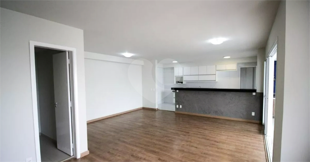 Cozinha americana moderna integrada à sala ampla e à varanda