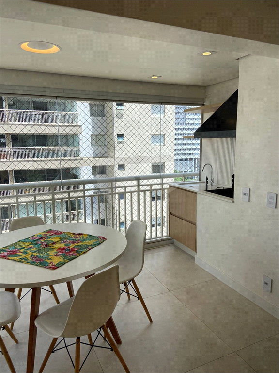 A sacada gourmet é ampla, com churrasqueira a carvão e fechamento em vidro, perfeita para momentos de lazer.