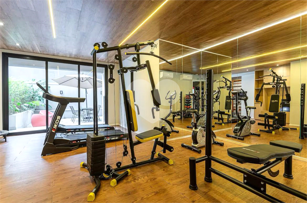 O condominio oferece academia, bicicletário, salão de férias