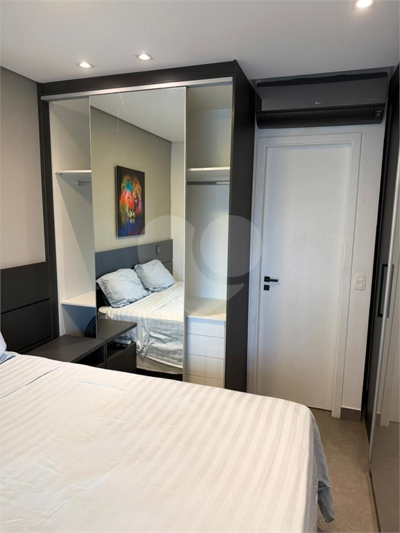 Amplo para o padrão, com armários planejados, portas espelhadas, acabamento sofisticado e espaço para cama queen.