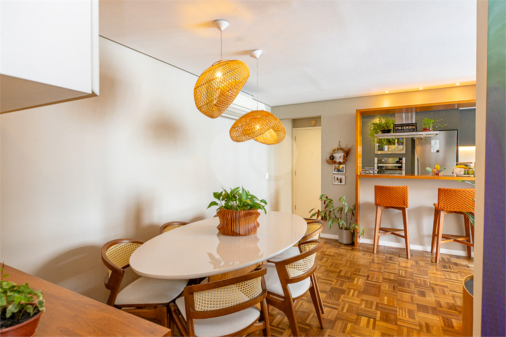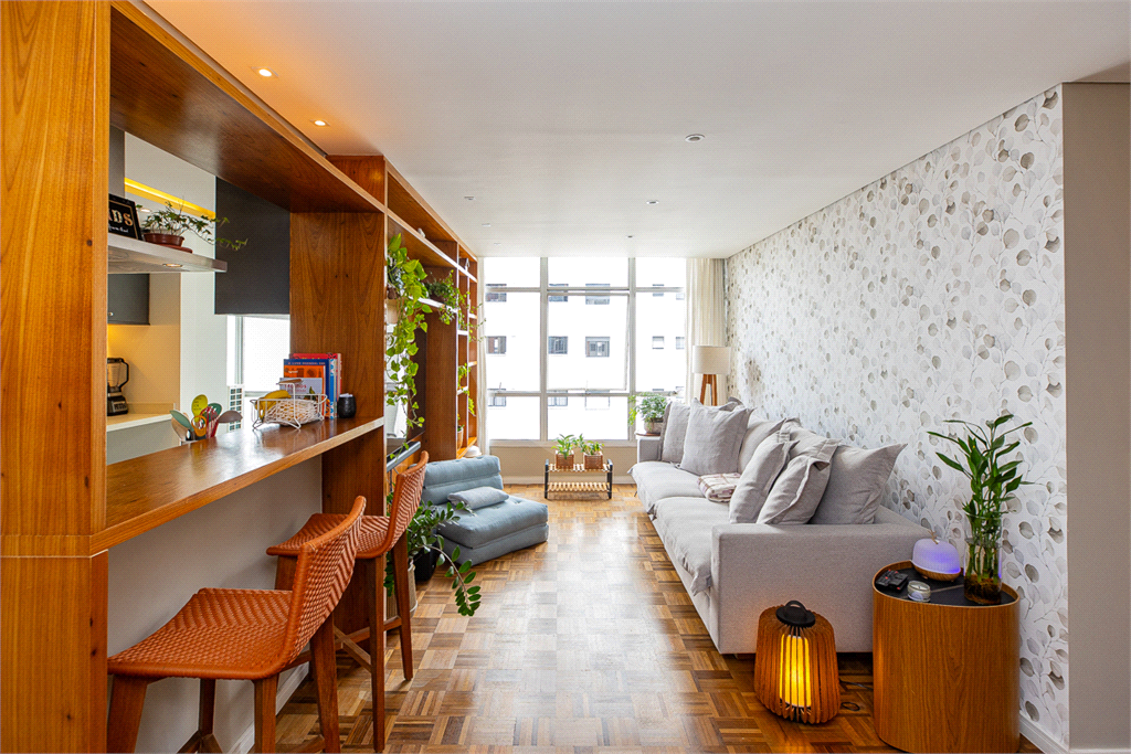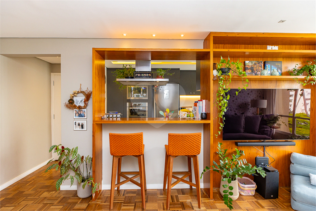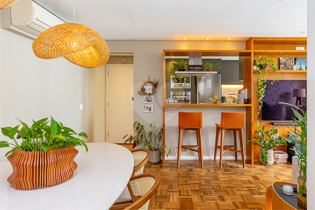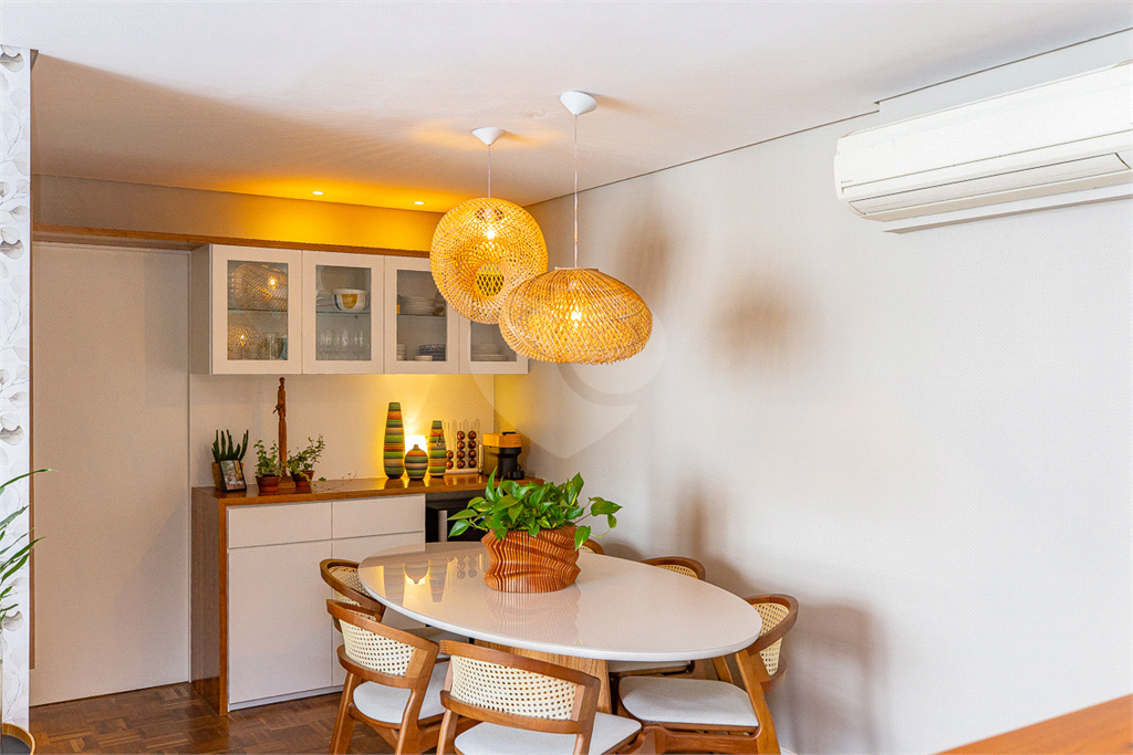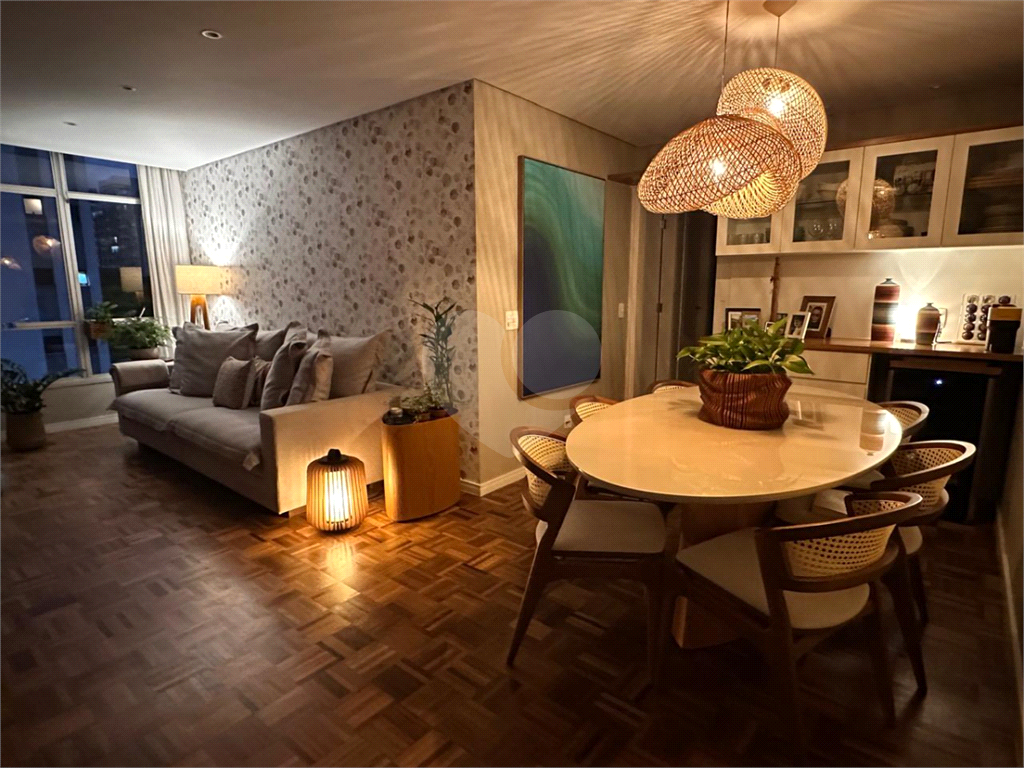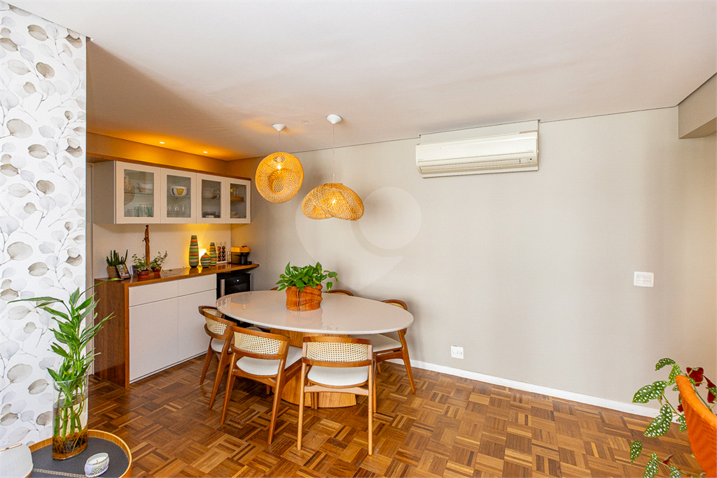 Conceito Aberto: Uma sala ampla e integrada, perfeita para receber e socializar, unindo o estar e o jantar em um único ambiente muito iluminado e arejado, com janelões chão ao teto, dando maior amplitude ao ambiente e entrada de Luz. Piso de madeira em taquinho renovado, o que proporciona aconchego e beleza. Aparador embutido em madeira dando suporte á sala de jantar e espaço para uma adega tamanho (34 garrafas).