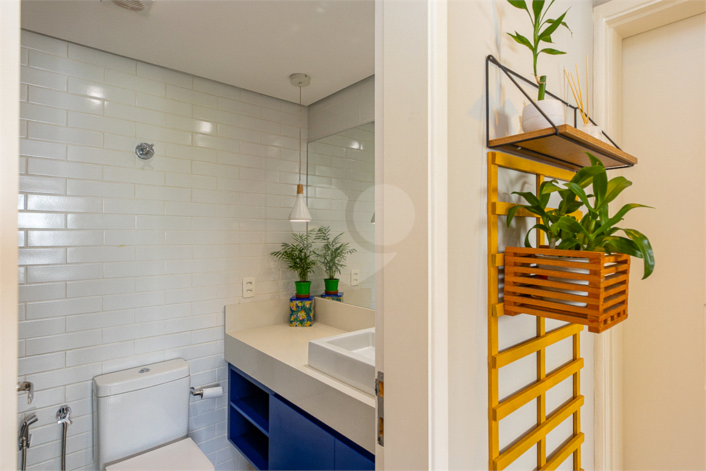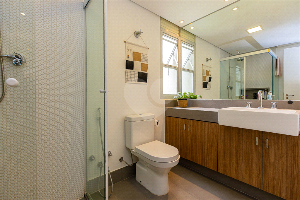 1 banheiro social reformado e charmoso, com acabamentos de primeira linha e chuveiro Deca.