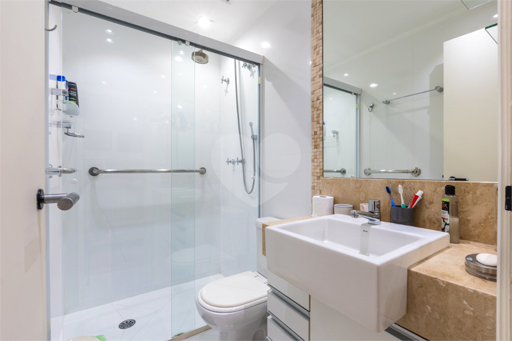 Banheiros bem dimensionados, com acabamentos de qualidade.
