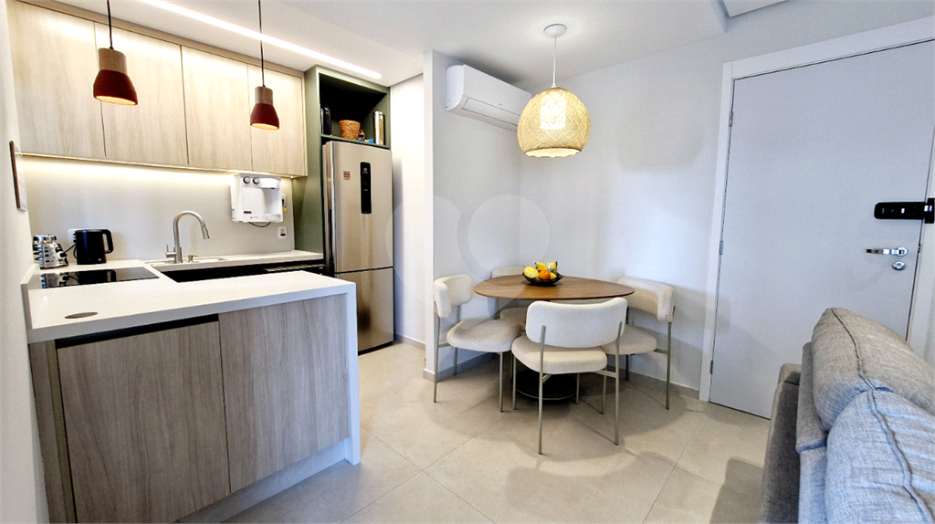 Apartamento novo, totalmente mobiliado, com 71 m² de área útil, com salas de estar e jantar integradas à cozinha, varanda com churrasqueira elétrica, 3 dormitórios sendo 1 suíte, 1 banheiro social e 1 vaga de garagem.