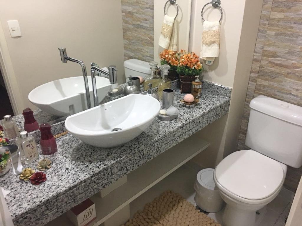 O condomínio possui piscina climatizada, academia de ginástica, salão de festas, playground, área de convivência e jardim.