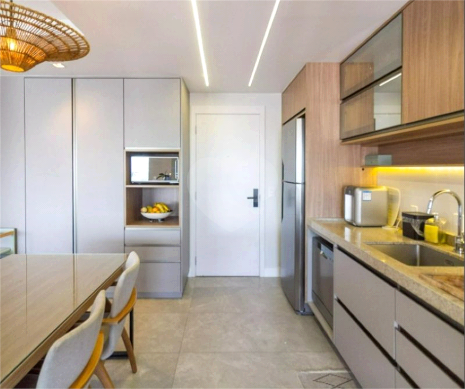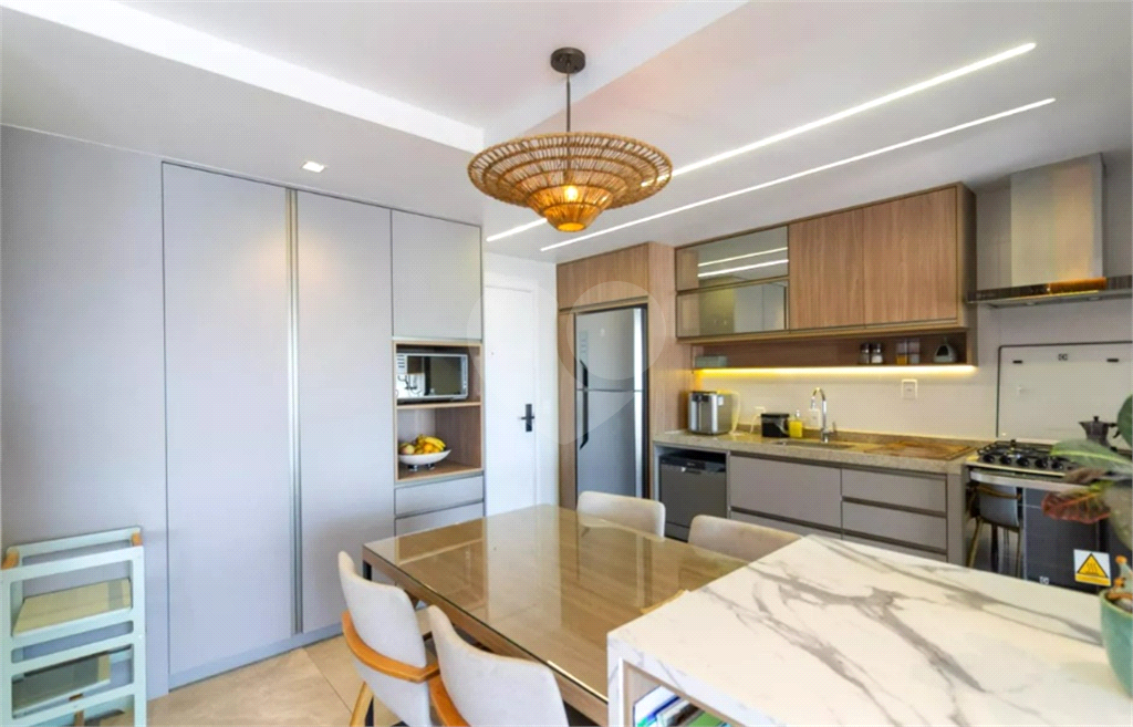 Elevador e hall privativos, living amplo, com terraço integrado, churrasqueira, 3 suítes, lavabo, cozinha em conceito aberto e banheiro de serviço. Possui duas vagas de garagem.