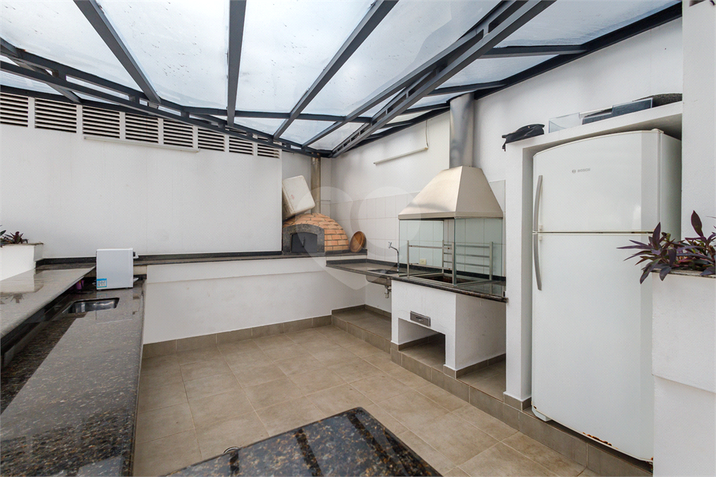 O condomínio possui uma área de lazer completa, com piscina, sauna, quadra poliesportiva, academia, playground, área gourmet com churrasqueira e forno de pizza, salão de festas, espaço de convivência e jardim.