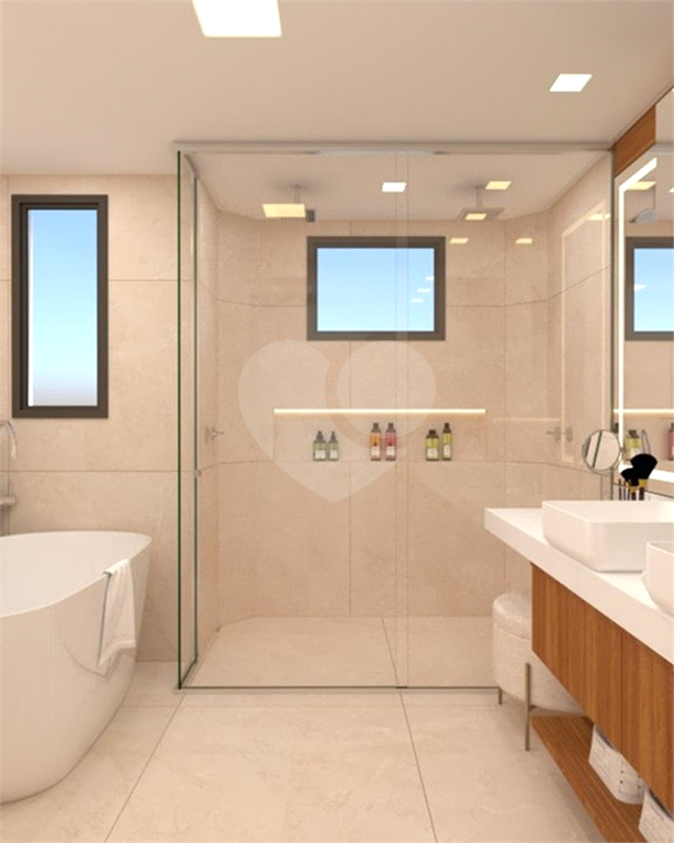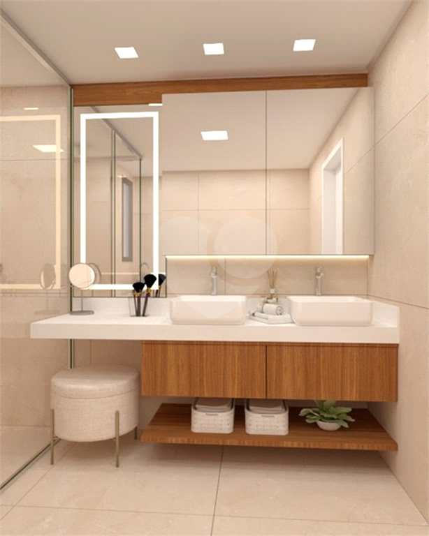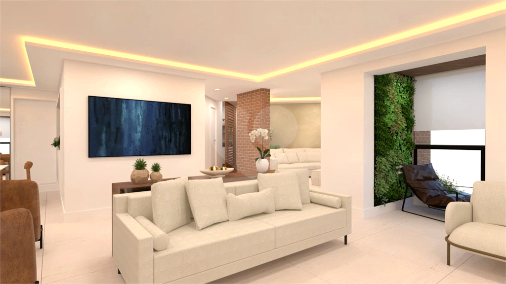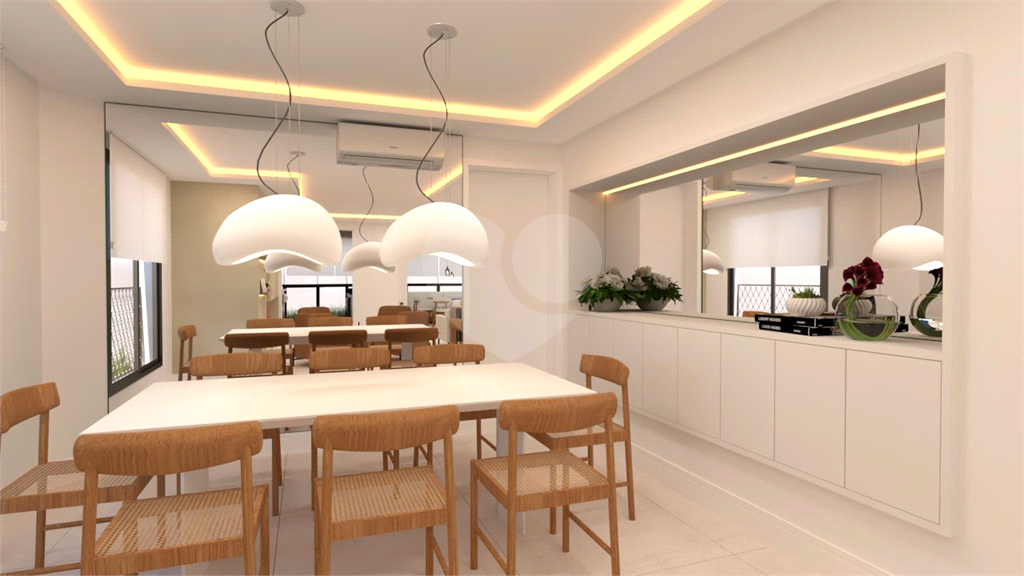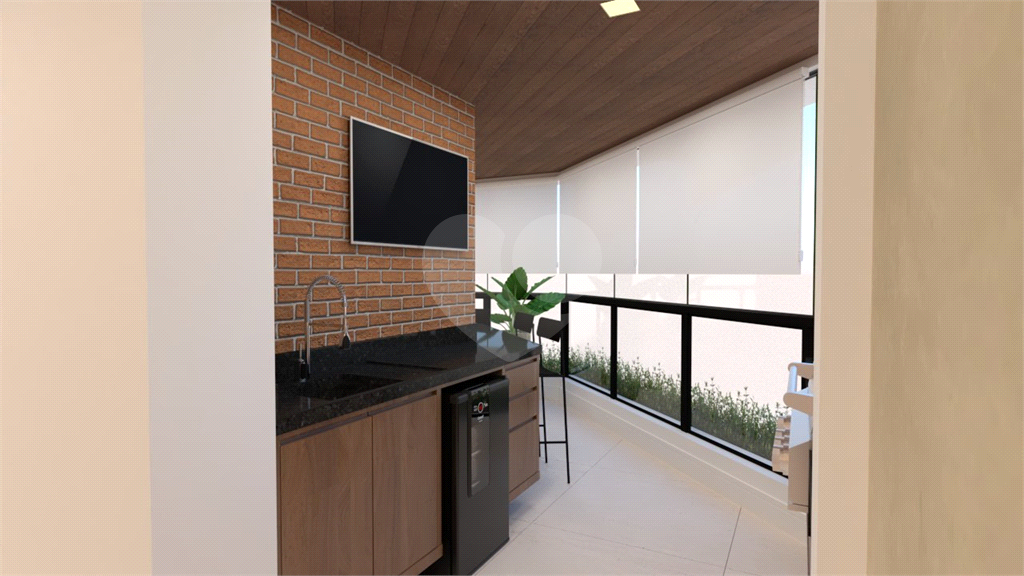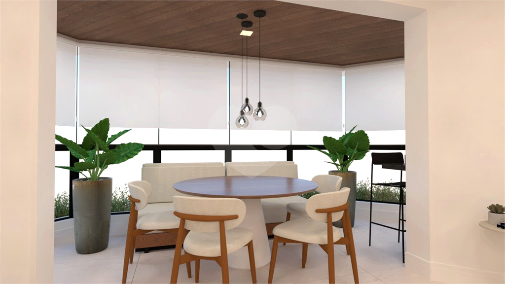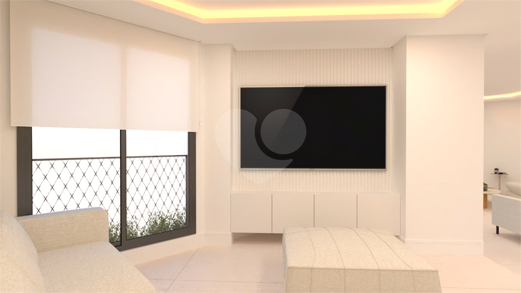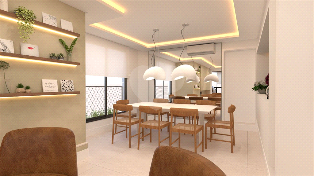 A área social é um grande destaque, com sala de estar, jantar, TV e lareira, além de lavabo. A varanda é ampla, com janelas do piso ao teto e ponto para instalação de churrasqueira elétrica.