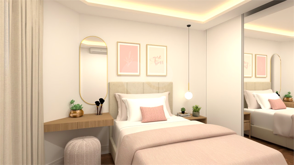 A planta original de 4 dormitórios foi adaptada para oferecer mais amplitude: hoje são 3 dormitórios, sendo 2 suítes. A suíte master conta com closet e banheiro senhor e senhora. O quarto dormitório foi integrado à sala, criando um espaço ideal para home theater ou escritório, com fácil reversão.