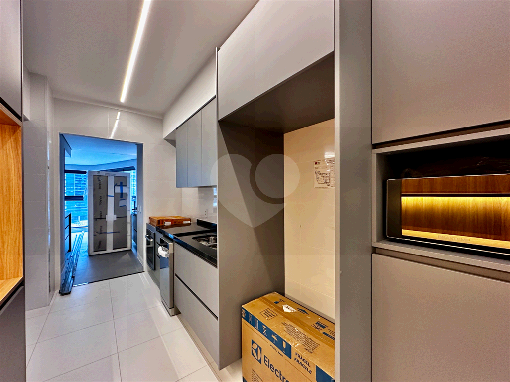 A ampla sala , integrada à varanda, dá a sensação de maior amplitude, deixando o ambiente agradável e bastante iluminado. O lavabo com a porta disfarçada, integrando a parede, deu um toque especial. A cozinha com armários planejados e eletrodomésticos ainda na caixa e a área de serviço completa com banheiro de empregada atendem todas as suas necessidades do dia a dia. Além disto tem 3 vagas e um depósito.