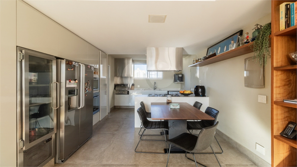 A área social conta com uma sala espaçosa para dois ambientes, lavabo e uma cozinha americana equipada com churrasqueira, cervejeira e despensa, além de uma área de serviço generosa.
