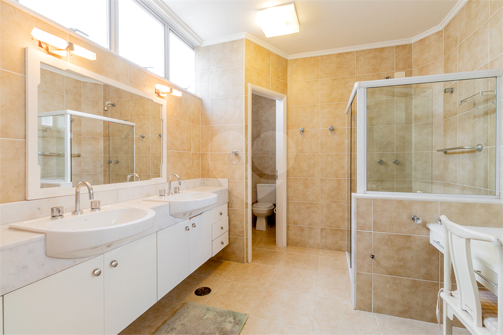 Na ala íntima, um corredor bem distribuído conduz aos três quartos. A suíte master impressiona pelo conforto e pela elegância, com um banheiro de tirar o fôlego, pensado para proporcionar momentos de relaxamento absoluto. Os outros dois dormitórios são igualmente amplos, claros e bem ventilados, com janelas generosas e ar-condicionado em todos os ambientes, garantindo conforto térmico durante todo o ano.