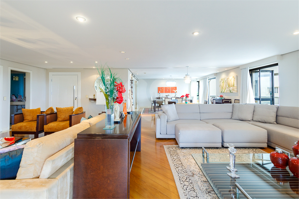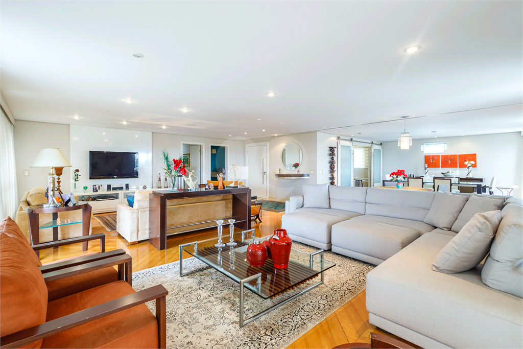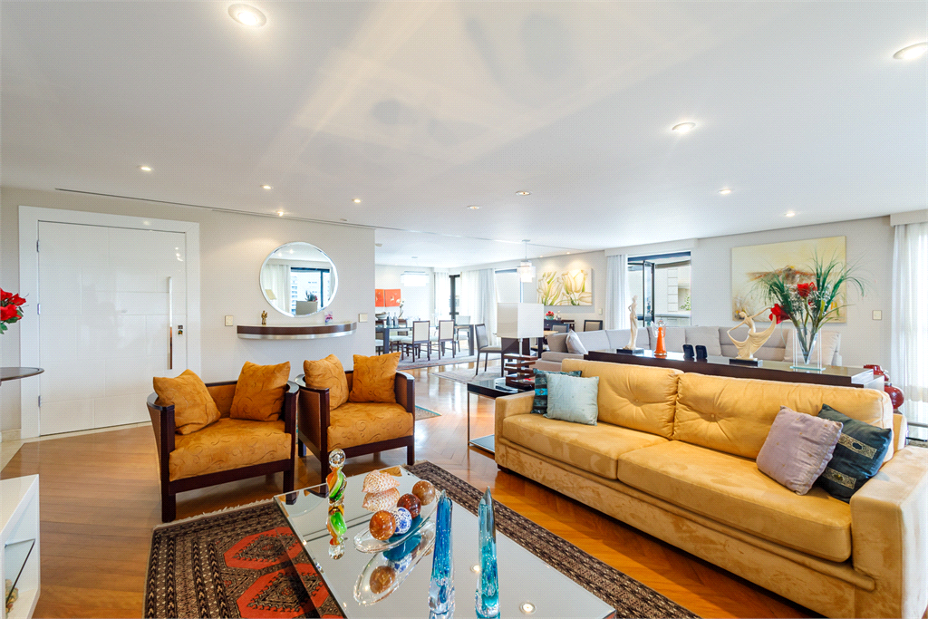 Com 390 m² de área privativa, o apartamento impressiona pela amplitude e distribuição inteligente dos ambientes. A área social é um dos grandes destaques, contando com um living espaçoso que integra três ambientes, proporcionando excelente circulação e luminosidade natural. O espaço é complementado por duas varandas, sendo uma delas varanda gourmet, ideal para receber familiares e amigos com conforto, sofisticação e privacidade.