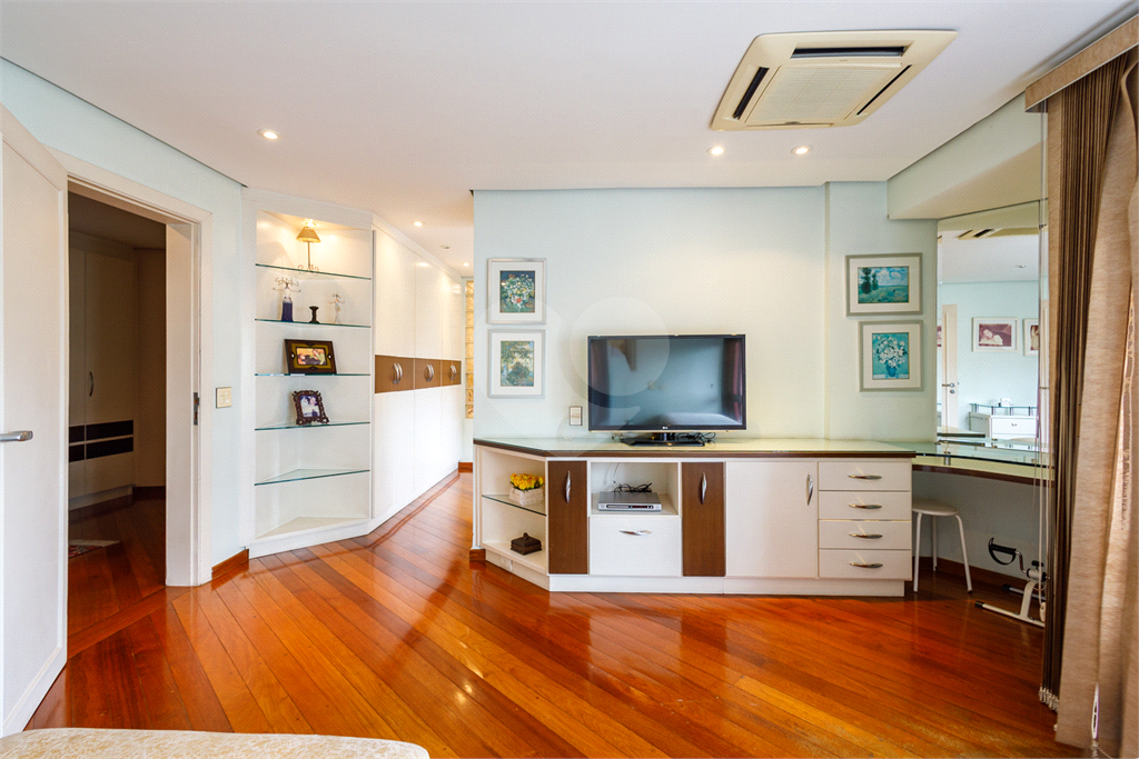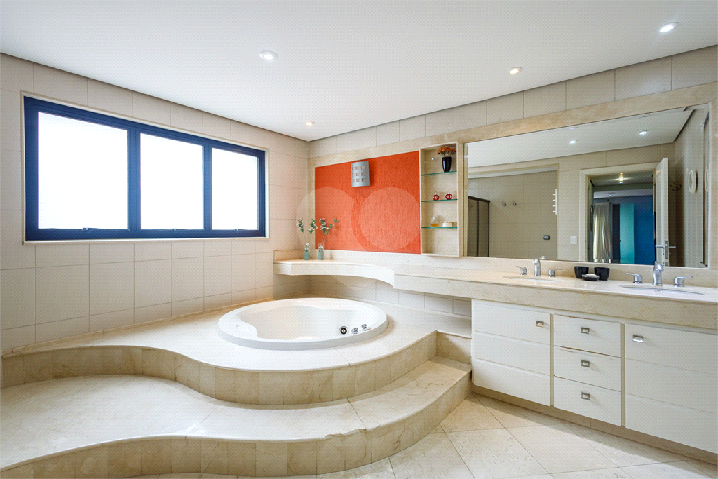Na área íntima, o imóvel dispõe de quatro suítes amplas, todas bem iluminadas e com excelente ventilação. A suíte master é um verdadeiro refúgio, oferecendo dois closets generosos e uma elegante sala de banho, que garante ainda mais exclusividade e bem-estar ao dia a dia. Ao todo, são cinco banheiros, atendendo perfeitamente às necessidades de uma família que busca conforto e funcionalidade.