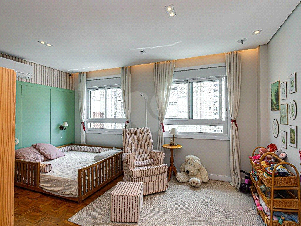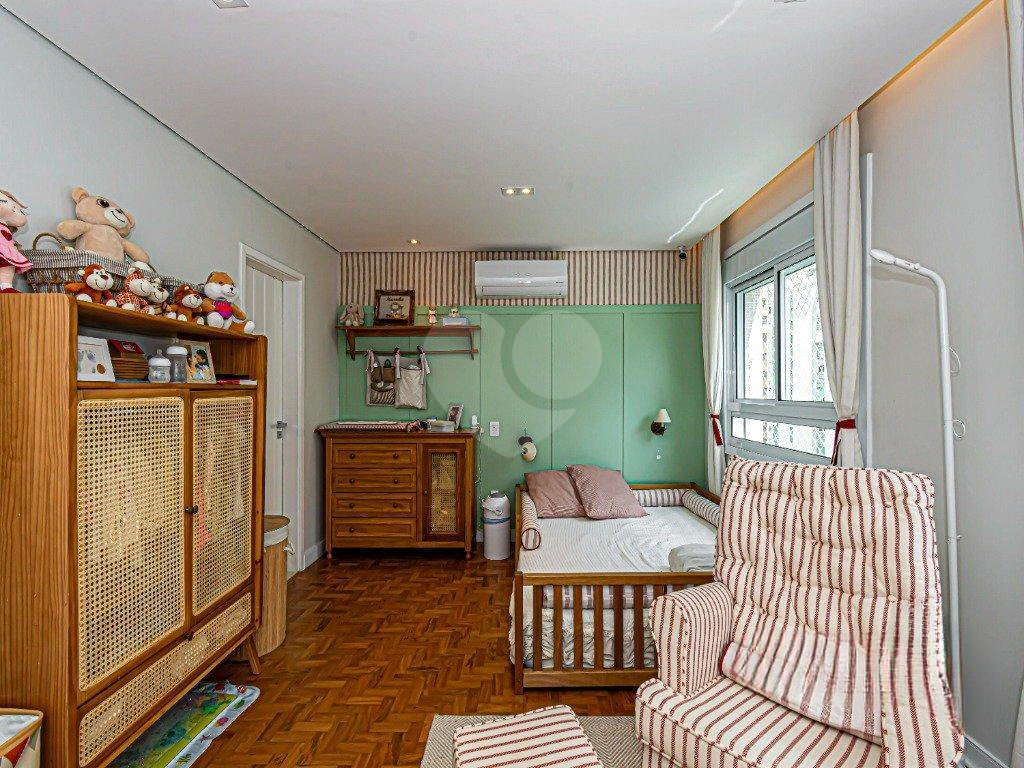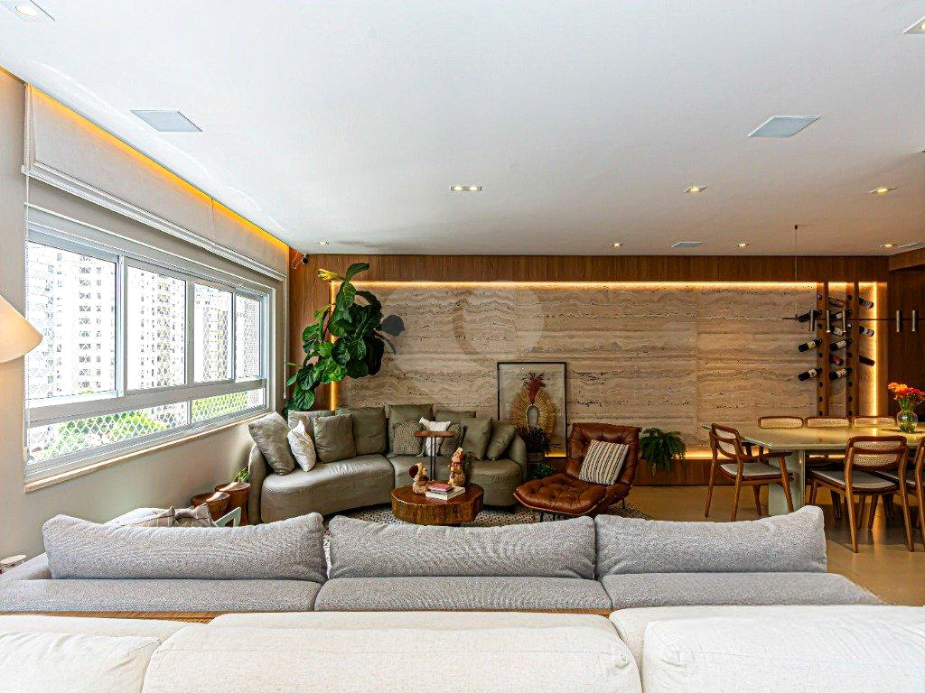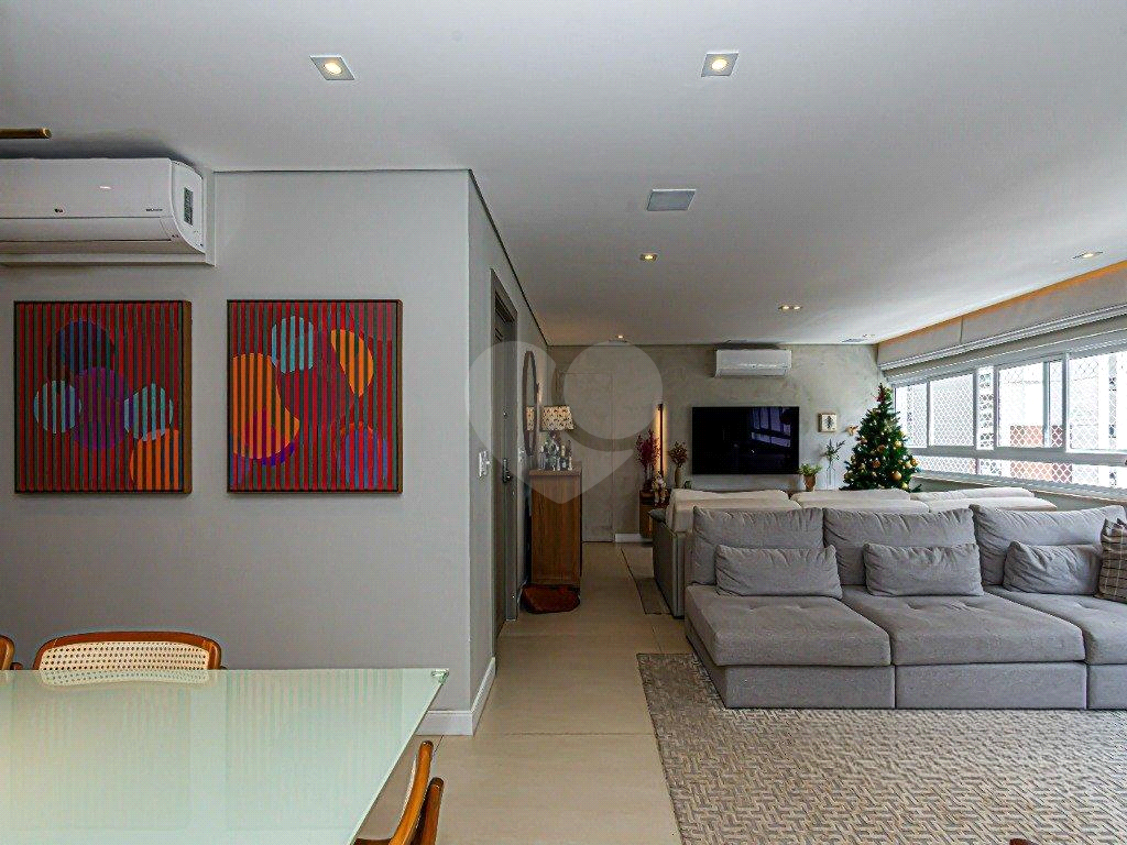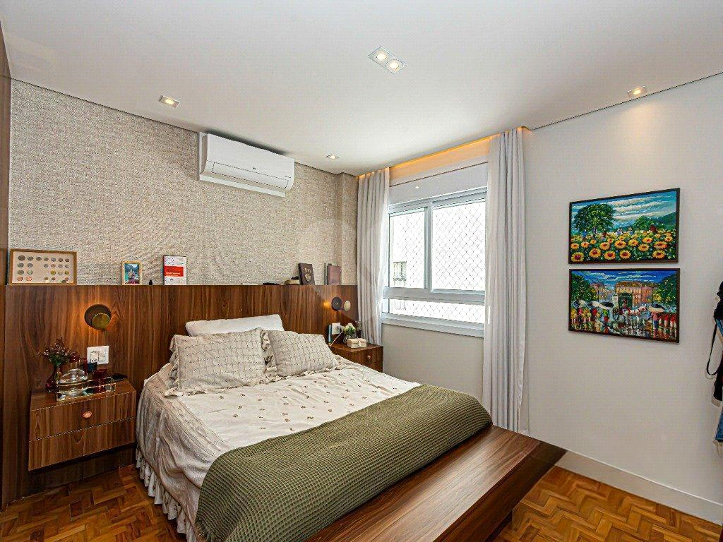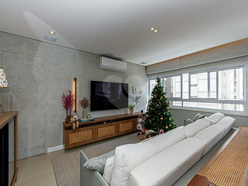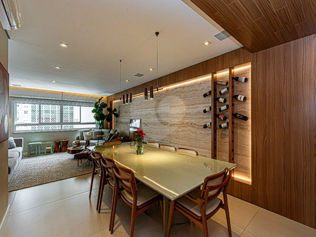 Este apartamento reformado está equipado com ar-condicionado em todos os ambientes. A cozinha pode ficar como um ambiente separado da sala de jantar através de uma porta camarão e esta equipada com churrasqueira a gás com exaustor. O banheiro da suíte master possui sauna a vapor, jacuzzi e pia com bancada dupla, e ainda há sistema de som. O living possui três ambientes e o hall do elevador é privativo. Além do depósito na garagem livre e demarcada o condomínio passou por recente modernização e oferece brinquedoteca, salão de festas, espaço gourmet e jardim.