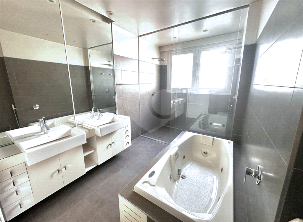 Algumas características notórias deste imóvel são a quantidade de armários projetados com muita elegância, desde o hall de entrada até a área de serviço, promovendo organização impecável por todo apartamento, e as janelas antirruído em PVC, que permitem isolamento acústico em relação ao fluxo inerente à avenida Nove de Julho.