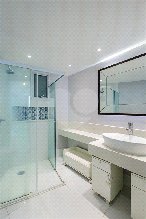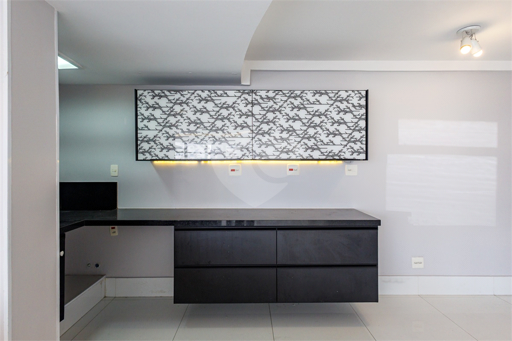 A cozinha integrada aos demais espaços é um dos grandes destaques do imóvel. Moderna e funcional, possui ilha central, tornando o preparo de alimentos mais prático e social, além de favorecer a integração com a sala de estar e jantar, perfeita para quem valoriza convivência e praticidade sem abrir mão de sofisticação. O apartamento ainda dispõe de lavabo, atendendo com conforto a área social.