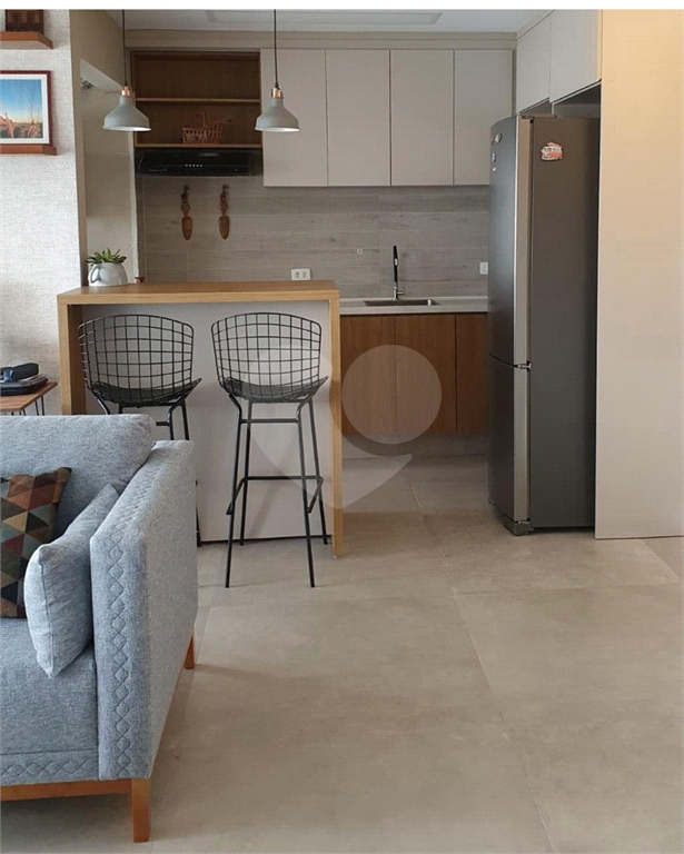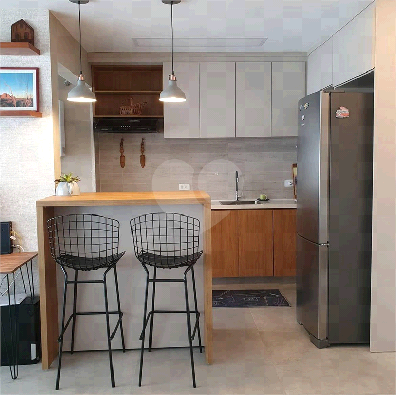 Cozinha com excelente aproveitamento de espaço, com integração fácil à área social