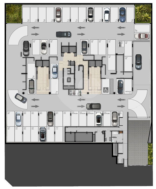 A garagem é um exemplo notável de atenção aos detalhes, com ventilação e iluminação naturais, paisagismo cuidadosamente planejado e decoração que se harmoniza perfeitamente com a estética geral do condomínio. Além disso, foi projetada para acomodar carros superesportivos, garantindo que os proprietários desfrutem de uma experiência de estacionamento única.