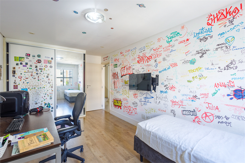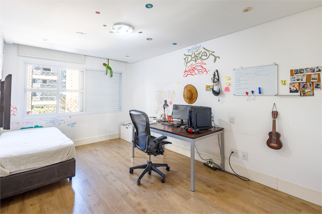 A planta quadrada aproveita todos os espaços, permitindo ventilação e iluminacao natural. O living é amplo e com duas sacadas que dão vista para as árvores do prédio, São 4 dormitórios, sendo 1 suite. Atualmente a suite do casal tem o escritório que seria o 4 dormitório. Armários orgnaizam o dia a dia . Cozinha ampla com espaço para copa. Área de serviço generosa e dependencia completa de funcionária. Essa unidade conta com 1 caga de garagem, sendo possível alugar outras vagas no prédio ao lado.