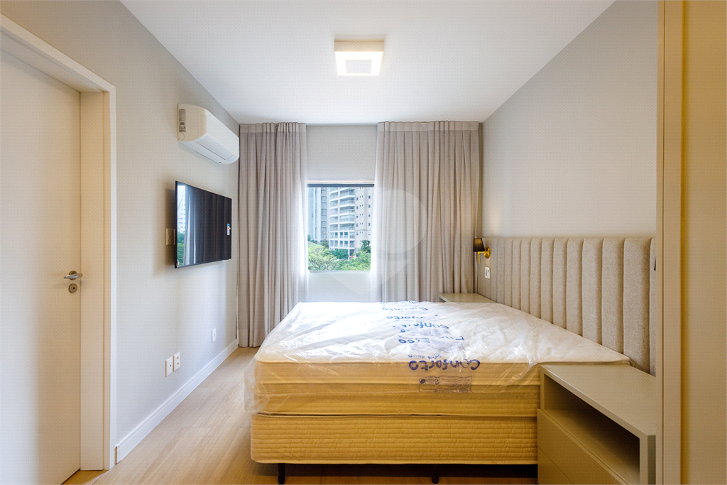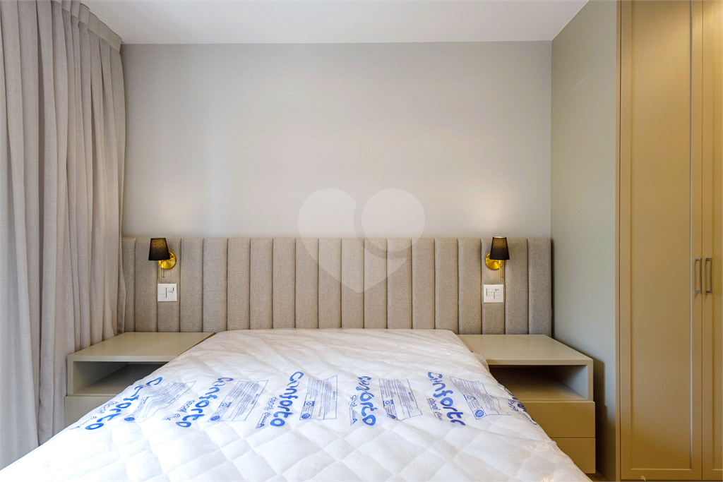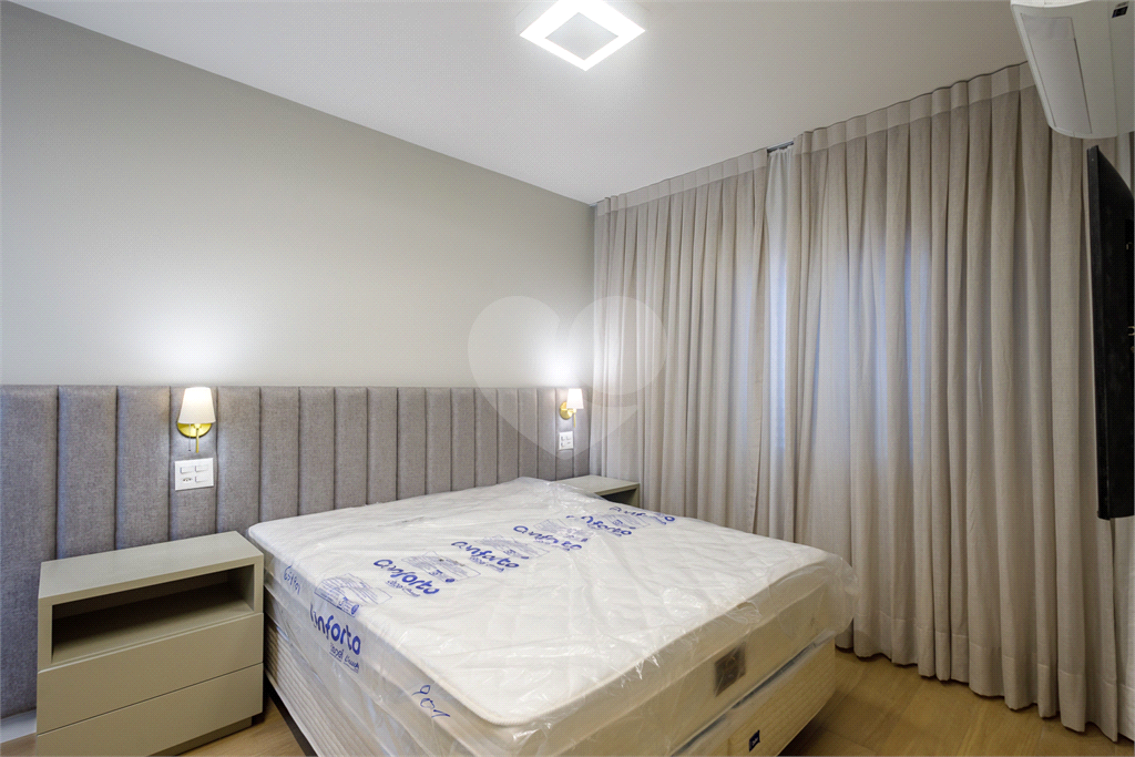 Quartos com cabeceiras iluminadas, cama box e colchões de primeira linha.