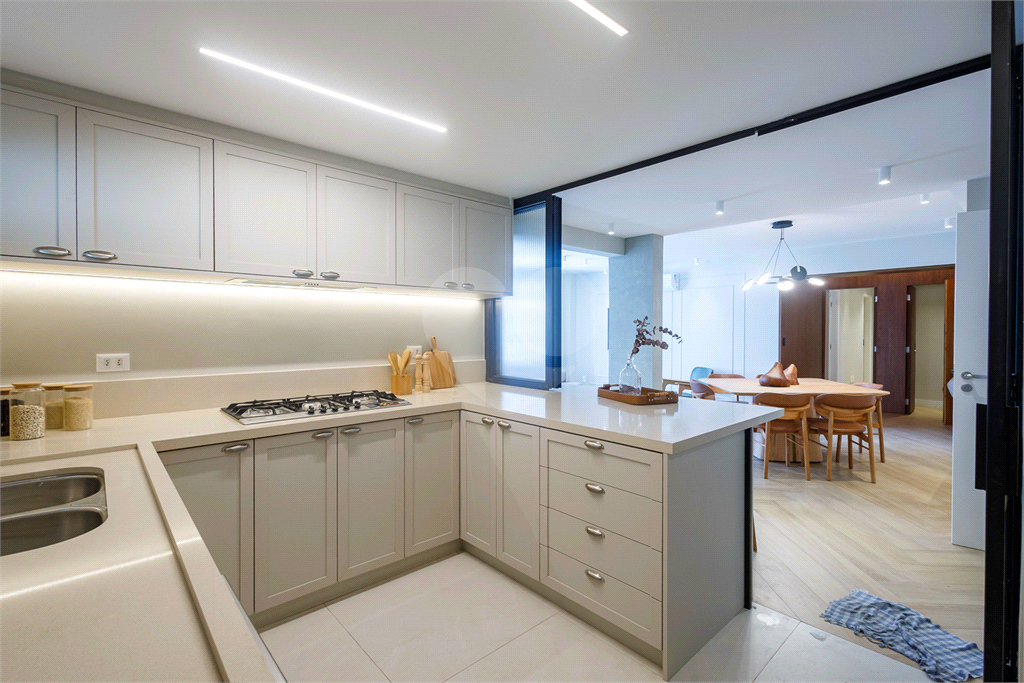 O imóvel passou por reforma completa elétrica e hidráulica, recebendo marcenaria planejada em todos os ambientes, projeto de iluminação em LED e luminárias modernas, além de revestimentos nobres, espelhos e box nos banheiros.