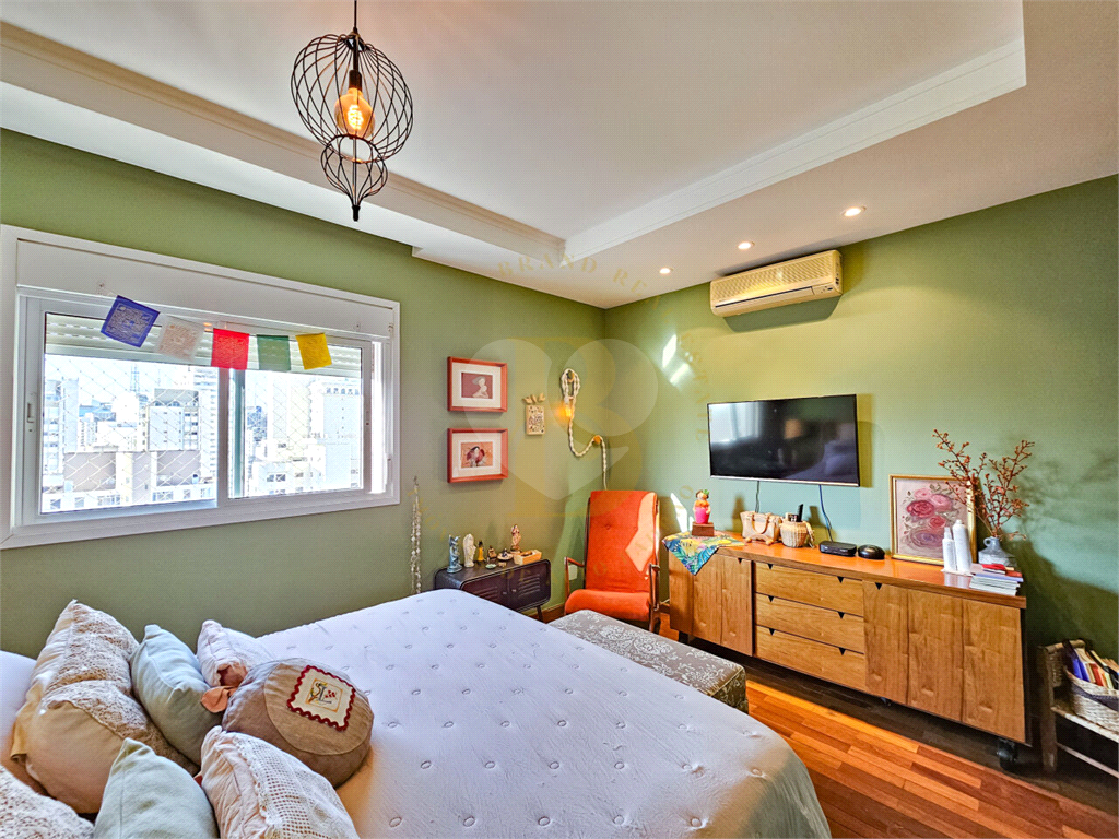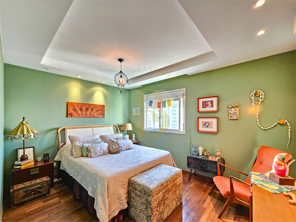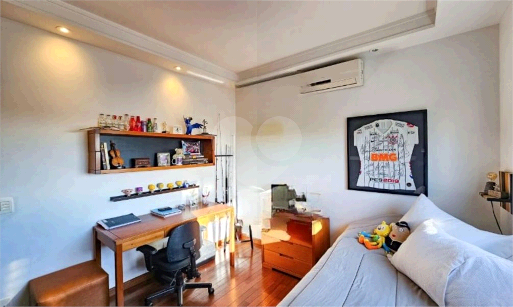 São 3 suítes espaçosas, todas com armários planejados e piso de taco de madeira, além de uma sala íntima que amplia as possibilidades de uso. O lavabo e o ar-condicionado completam o conforto dos ambientes.