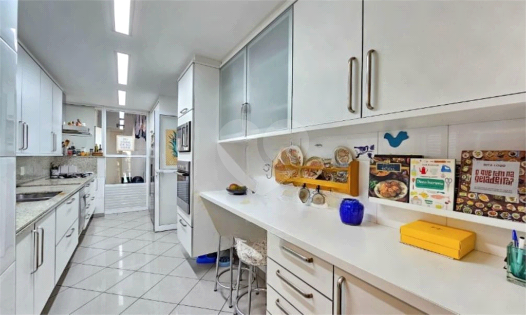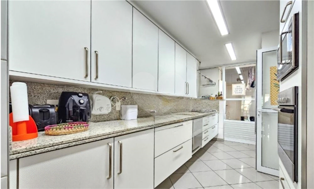 A cozinha Kitchens sob medida integra-se à copa e à área de serviço, também equipada com armários Kitchens, além de quarto e banheiro de apoio.
