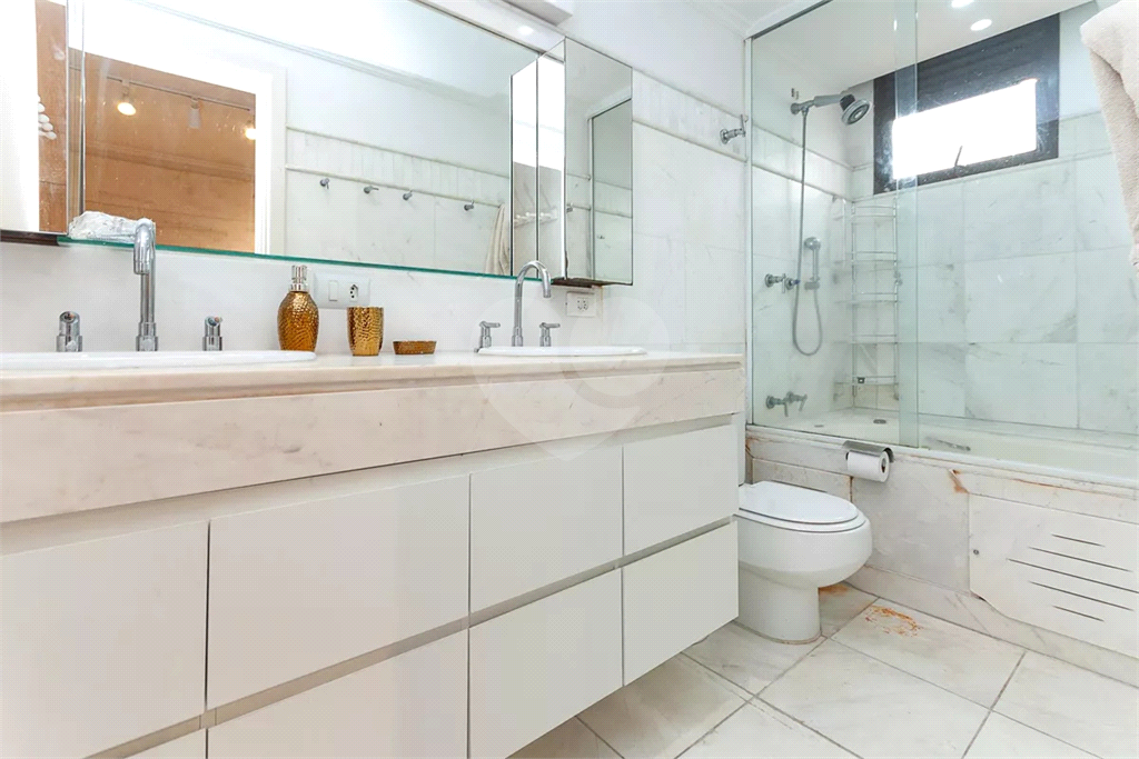 Ao todo são seis banheiros, distribuídos de forma funcional para atender tanto a área íntima quanto os espaços sociais.