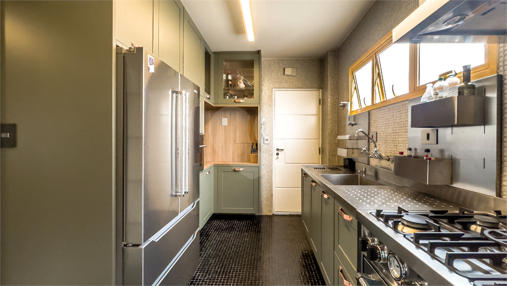 A cozinha é reformada e moderna, e a área de serviço é bem planejada, com um banheiro de serviço e um quarto (que pode ser usado como quarto de serviço ou despensa) trazendo praticidade ao seu dia a dia. As vistas externas são livres e incríveis, apreciadas das sacadas privativas, oferecem um panorama encantador da vibrante metrópole paulista.