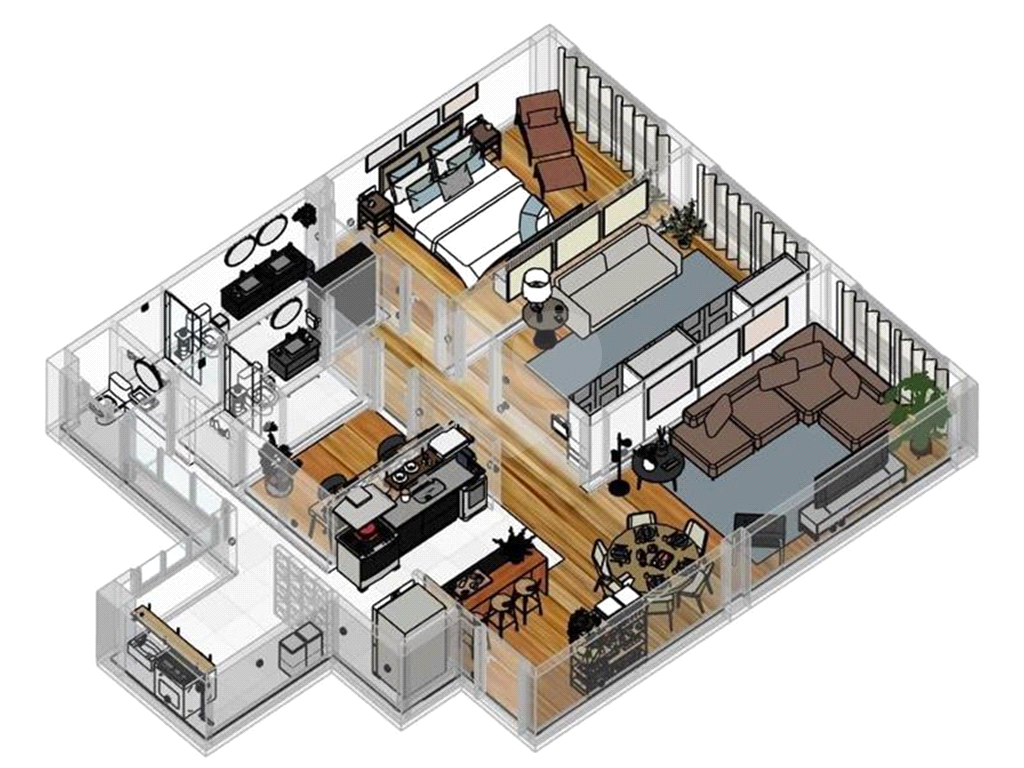 Reflete o conforto e a praticidade, com áreas bem distribuídas para atender suas necessidades.