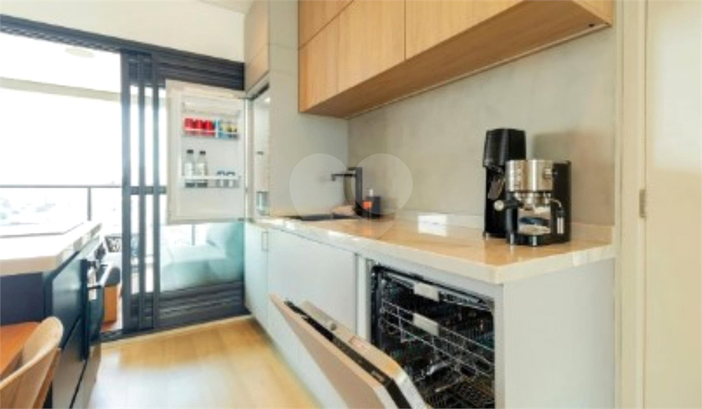 A área social foi intencionalmente ampliada, integrando sala e cozinha em um ambiente generoso, fluido e extremamente iluminado. A cozinha, de estilo europeu, é totalmente planejada, com geladeira, freezer e lava-louças embutidos, unindo estética clean e máxima funcionalidade.