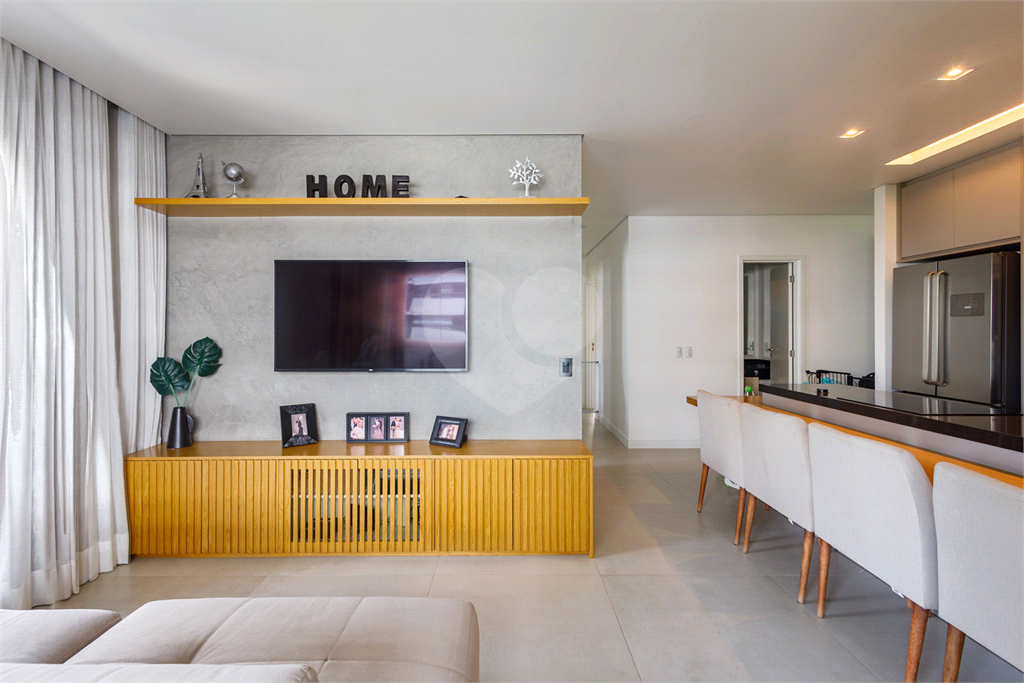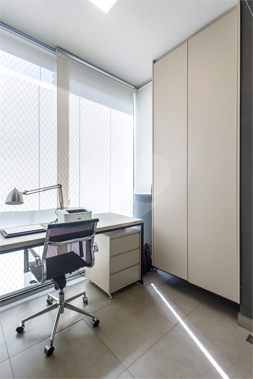 A planta original deste apartamento de 117m² foi mantida, com os seus 03 dormitórios, incluindo uma suíte aconchegante, além de lavabo, área de serviço independente e 3 vagas de garagem. Na suíte, a varanda foi aproveitada como um espaço para home office.