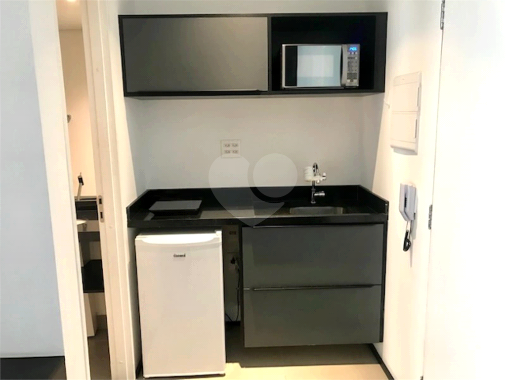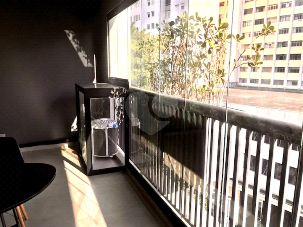Oportunidade para investidores, estúdio totalmente mobiliado e equipado na Santa Cecília, com 33 m², pronto para entrar, de frente, com ar condicionado, TV, geladeira, microndas, cooktop, cama, mesa, armários, cortinas, banheiro com box e aquecimento coletivo a gás, amplo terraço fechado com vidro e infra estrutura para instalação de tanque e lava roupa, piso nivelado com o living dormitório, fechadura eletrônica com senha.