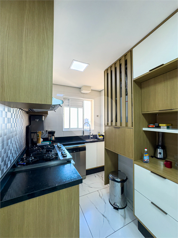 A cozinha é um verdadeiro convite à criatividade gastronômica, equipada com forno embutido, cooktop moderno e armários sob medida, ideal para quem valoriza o prazer de cozinhar com estilo e praticidade.