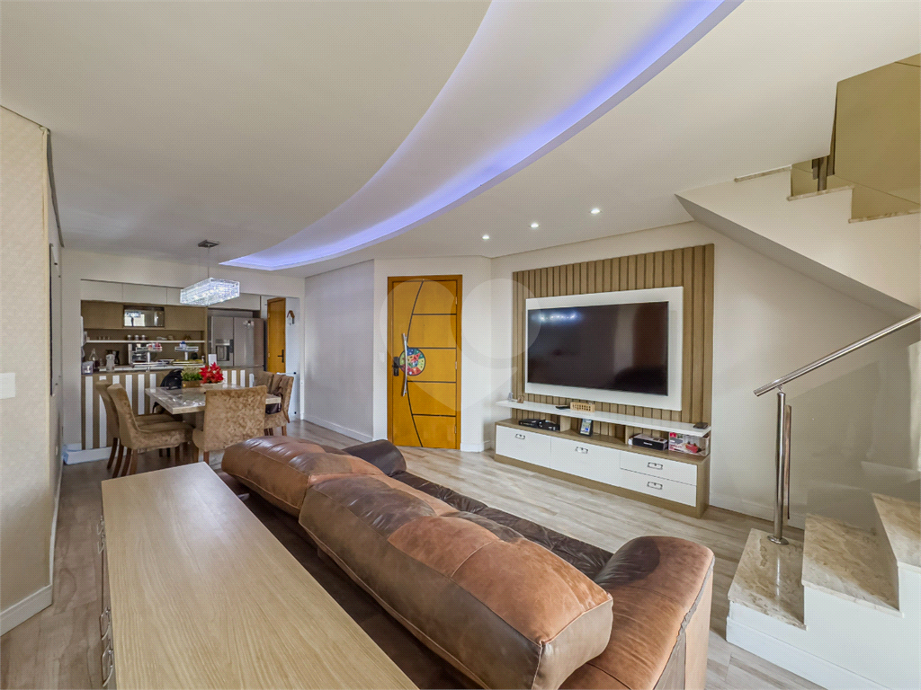 A iluminação sofisticada com sancas de gesso e lustres de alto padrão valoriza cada ambiente, enquanto os móveis planejados em todos os cômodos reforçam o estilo contemporâneo e a organização do espaço.