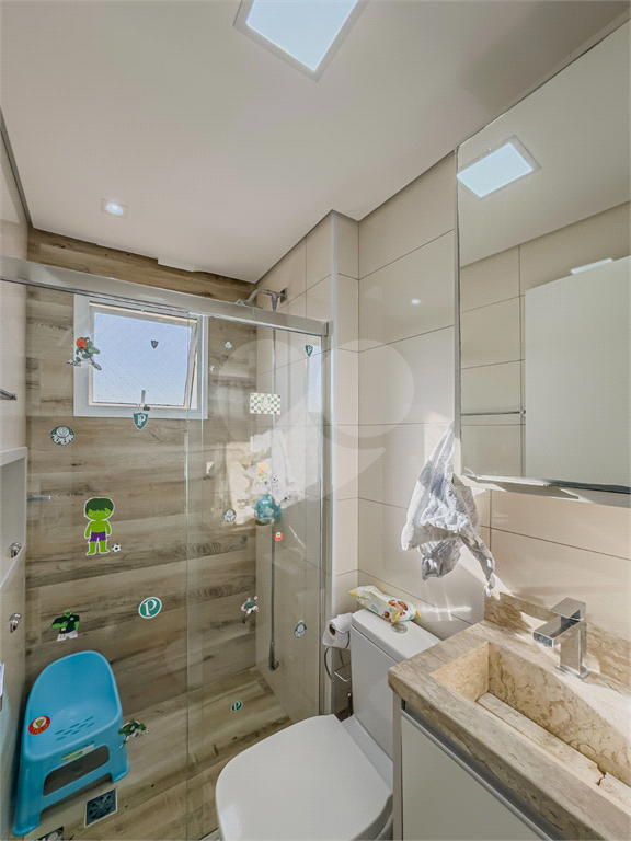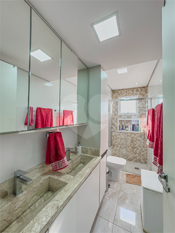 Os banheiros seguem o padrão de qualidade do imóvel, com bancadas de primeira linha, cubas sofisticadas e louças de alto padrão, oferecendo conforto e requinte ao dia a dia.