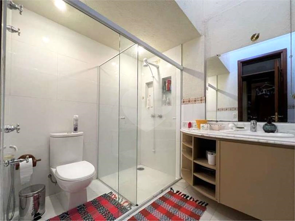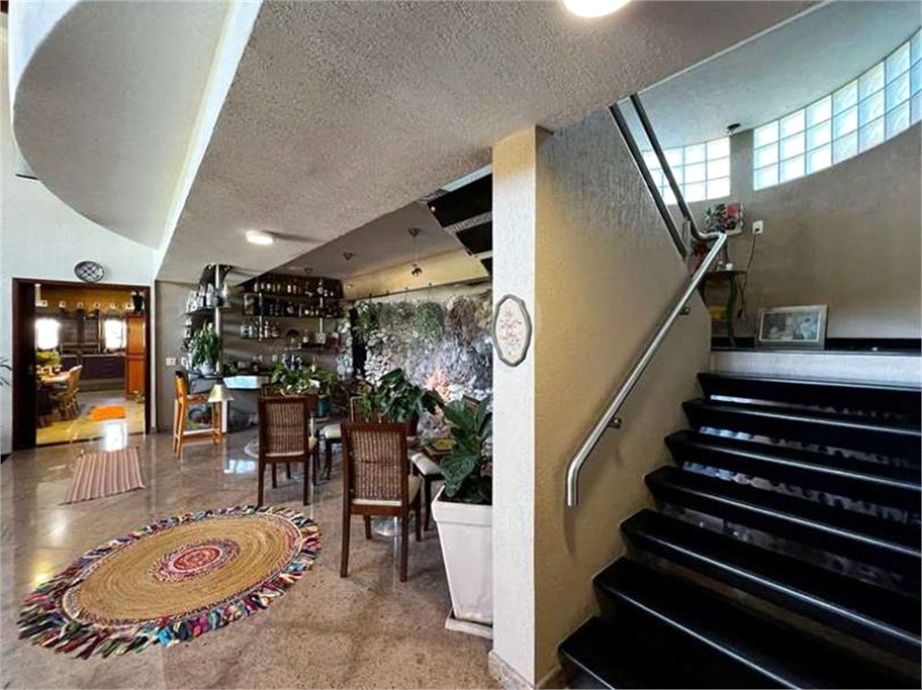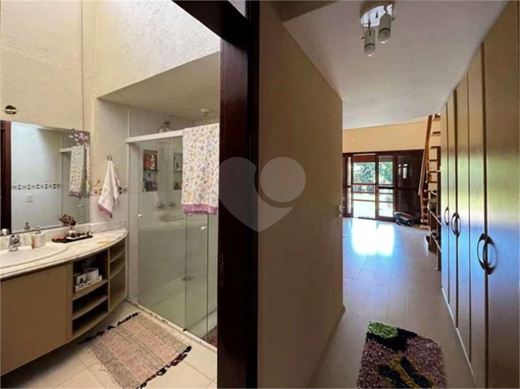 A mansão ainda conta com 3 acessos: social, lazer e serviço, hall de entrada social por um mezanino imponente, com pé direito alto, hall íntimo 1 com saleta, hall íntimo 2 com roupeiro, banheiros com bancadas em mármore, espelhos, gabinetes, box de vidro e nichos, sendo a suíte master uma sala de banho com 2 acessos, 2 espelhos, 2 cubas, 2 chuveiros, hidro, 2 vasos e aquecimento a gás, jardim interno, escada de concreto.