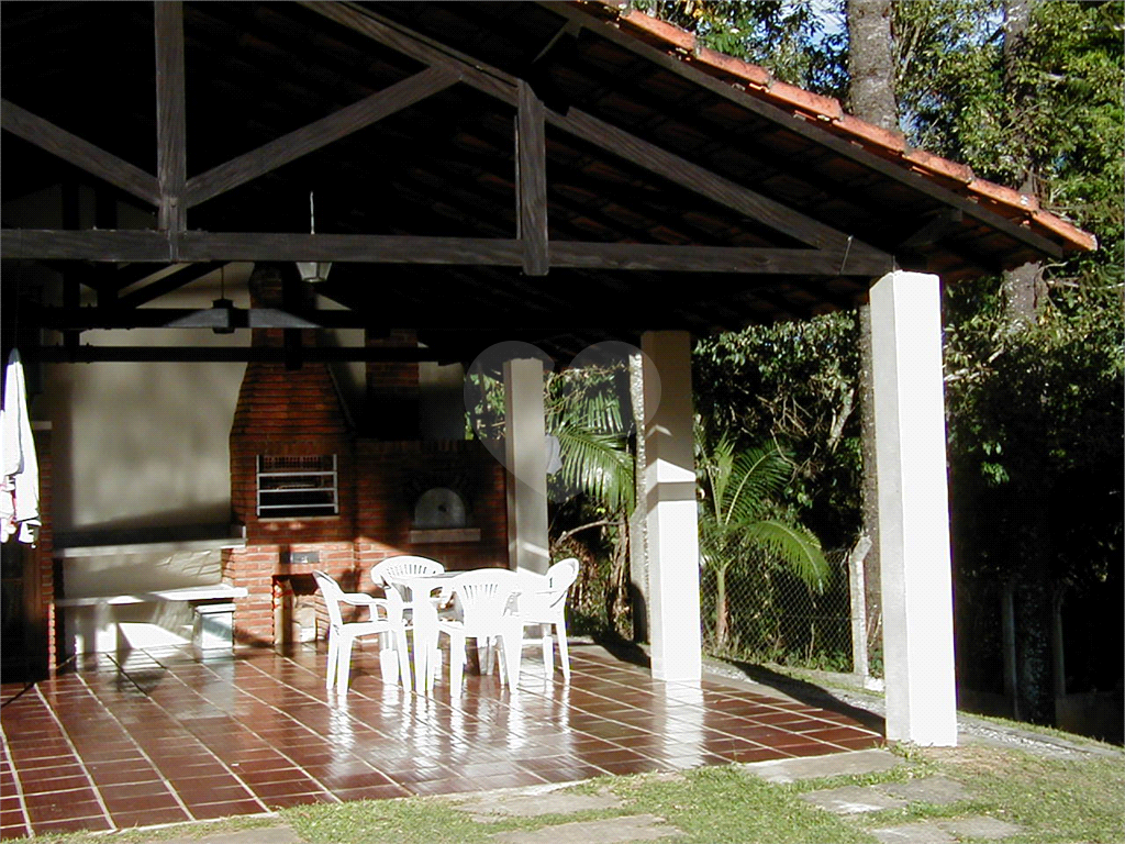 No meio da mata, encontra-se uma área com churrasqueira, próximo a uma