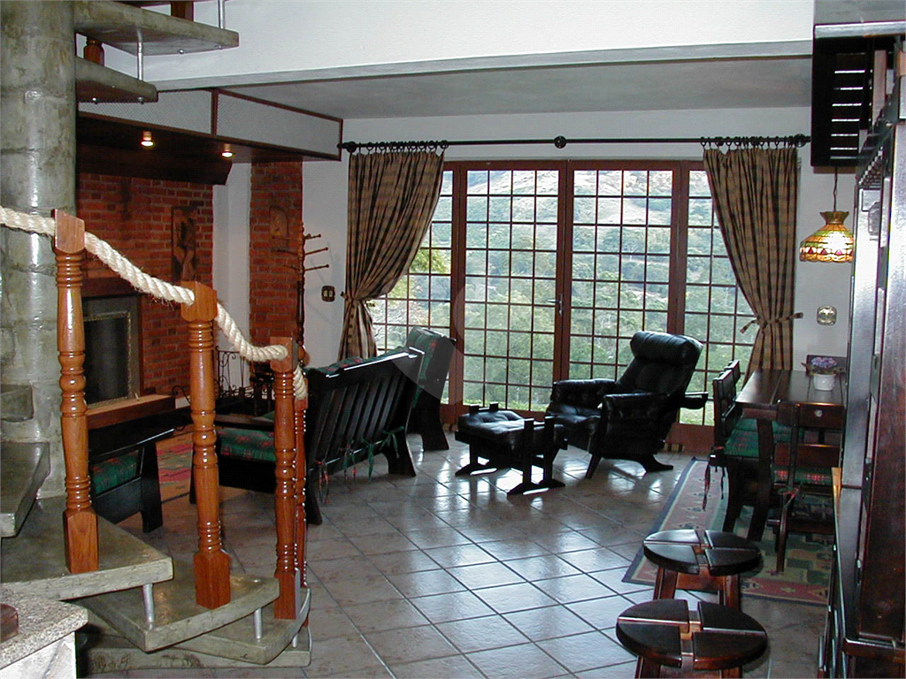 sala com lareira, sala de jantar com 54,0 m2 e Deck com vista para as