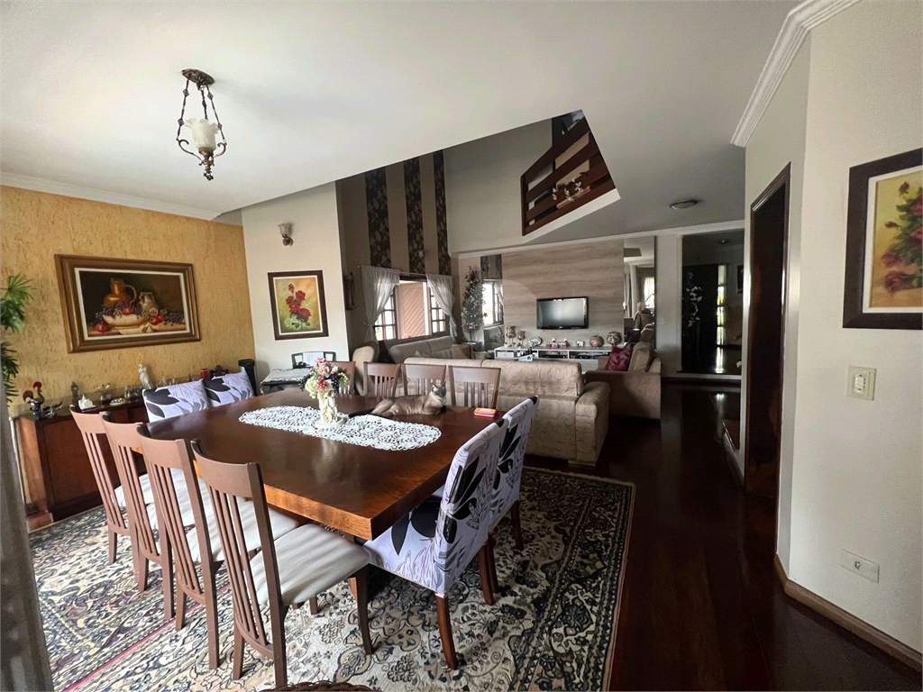 Living imponente com pé-direito duplo, integrado a três ambientes: sala de estar, sala de jantar e uma charmosa sala com lareira