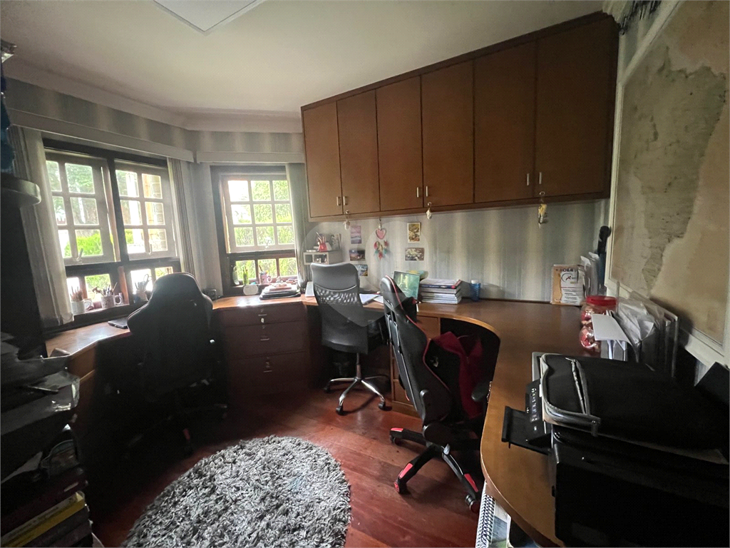 Escritório completo, com mobiliário planejado e três estações de trabalho/estudo, perfeito para o dia a dia profissional ou acadêmico