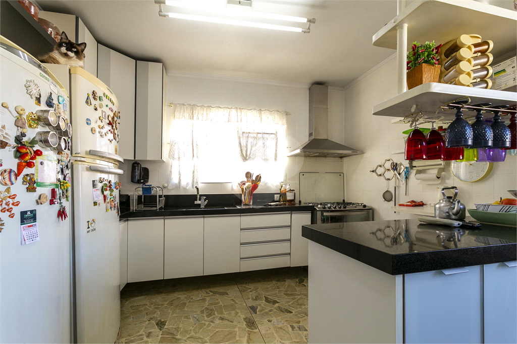 - Cozinha com copa repleta de armários modernos e despensa para organização