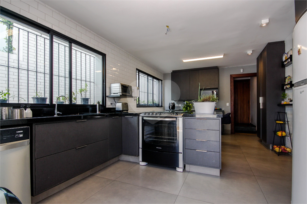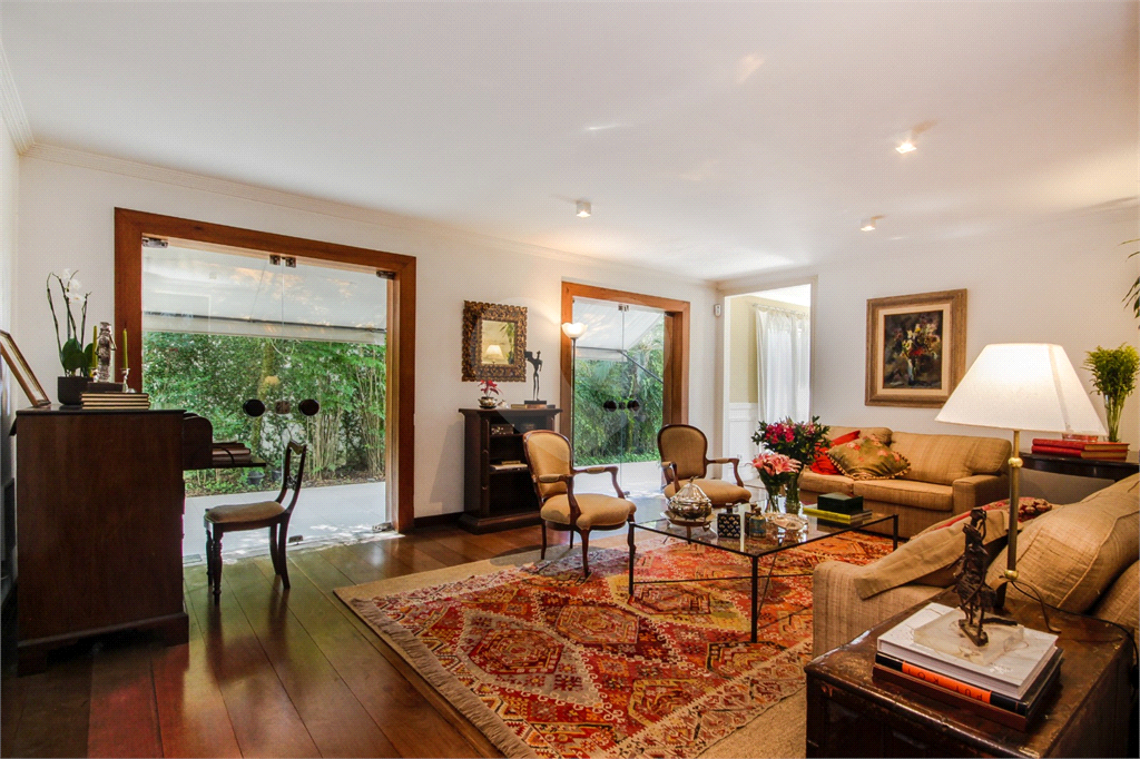 No pavimento térreo, um elegante hall de entrada com lavabo dá boas-vindas a um amplo living para dois ambientes, sala de TV com lareira, sala de jantar e uma copa-cozinha moderna, totalmente reformada, pronta para receber bons momentos em família e com amigos.