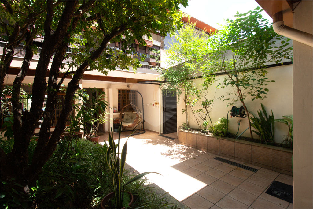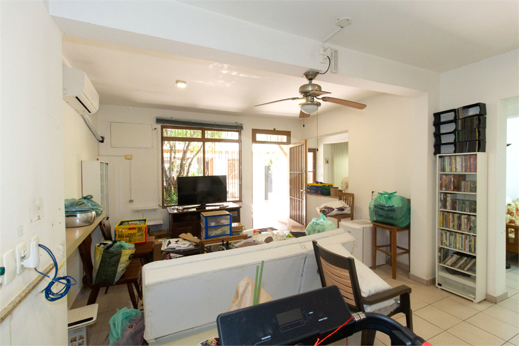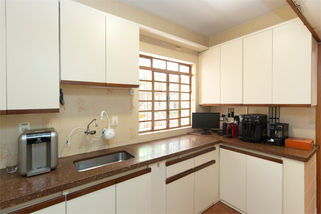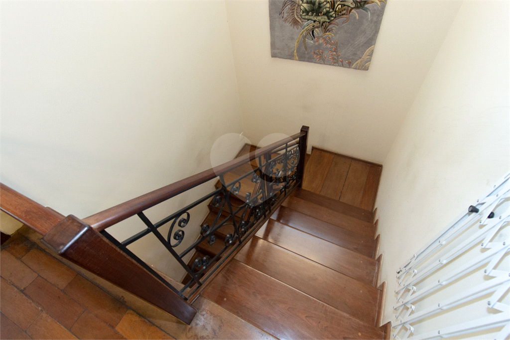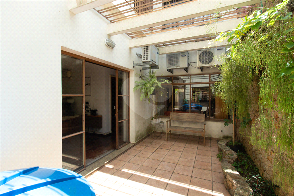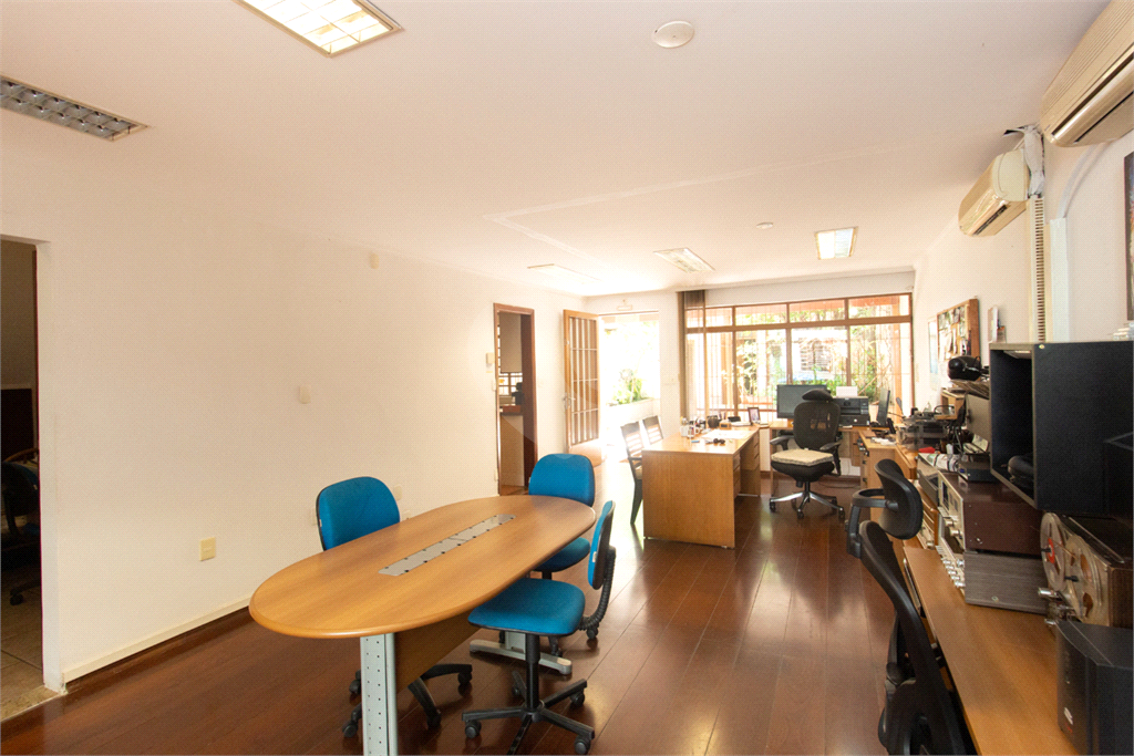 Térreo: Living espaçoso para três ambientes, com vista para o jardim de inverno e quintal arborizado. Copa equipada, dois lavabos e uma suíte (atualmente escritório) com vista para o jardim.