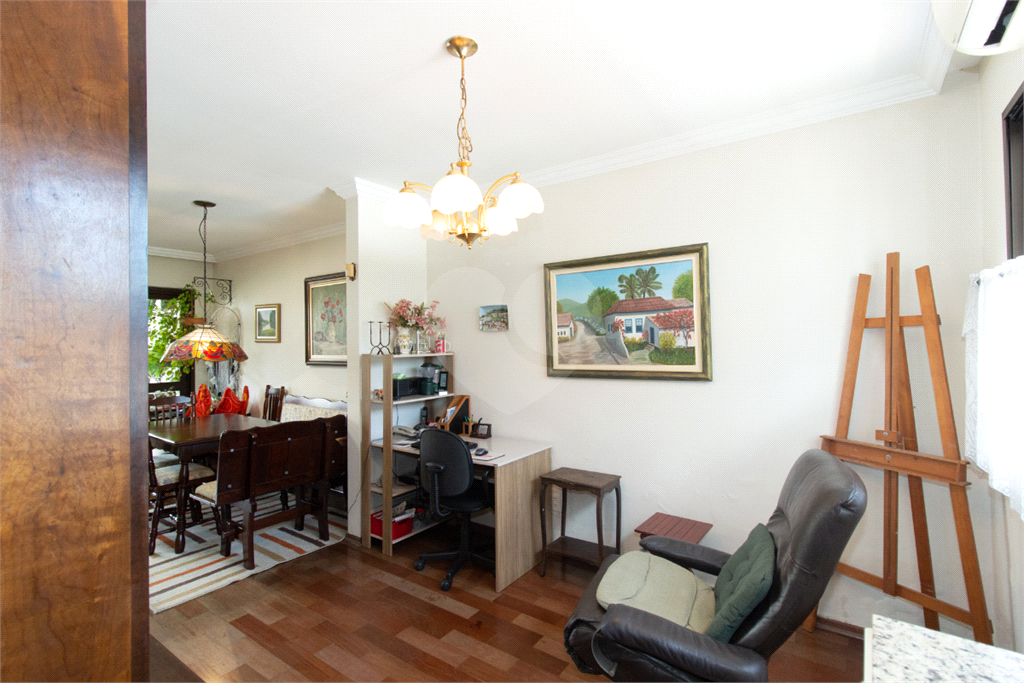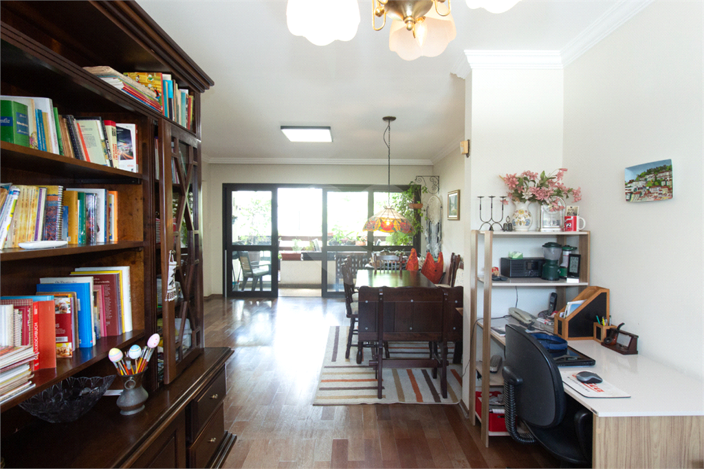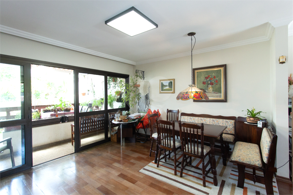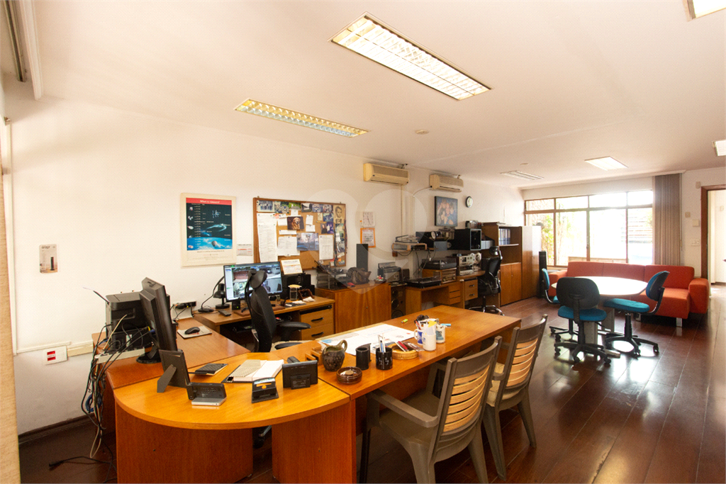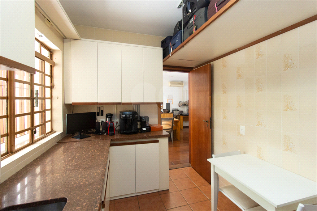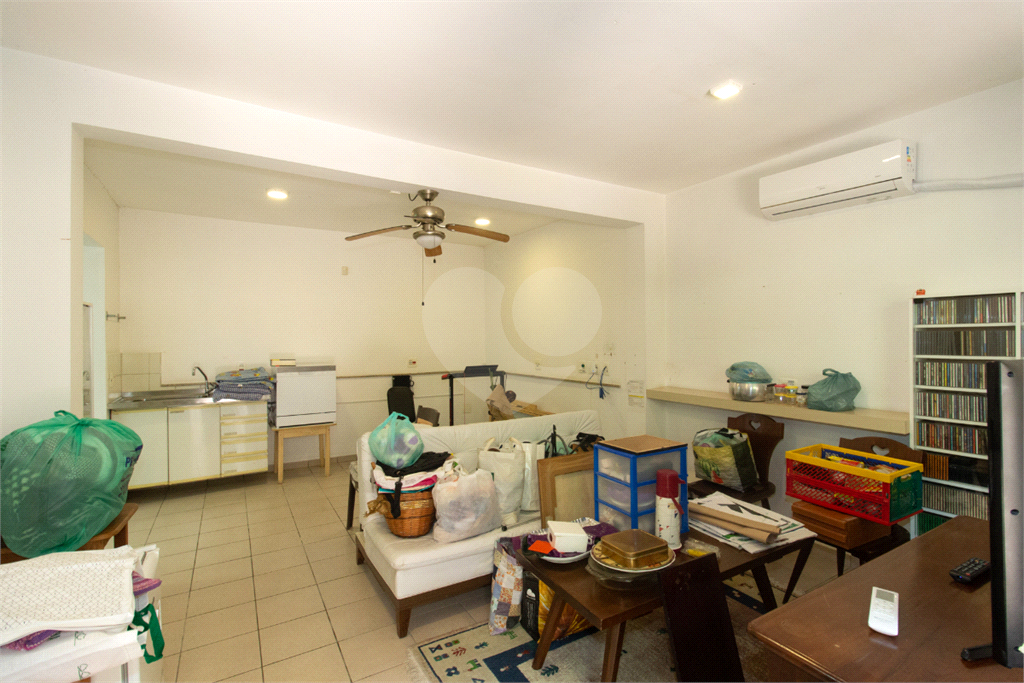 Térreo: Living espaçoso para três ambientes, com vista para o jardim de inverno e quintal arborizado. Copa equipada, dois lavabos e uma suíte (atualmente escritório) com vista para o jardim.