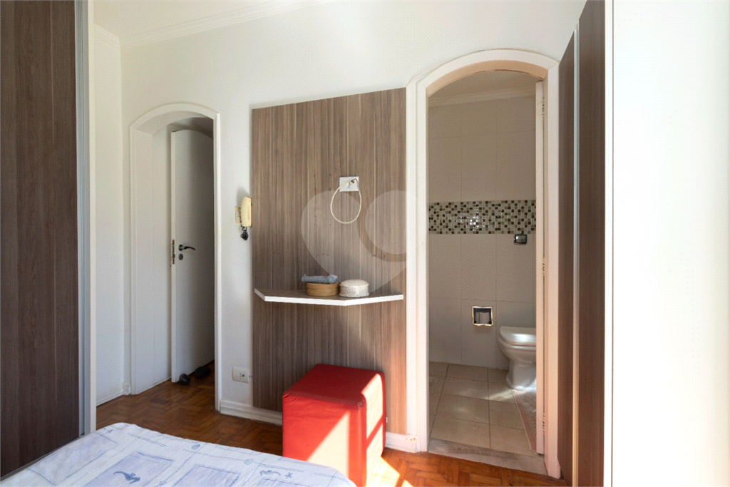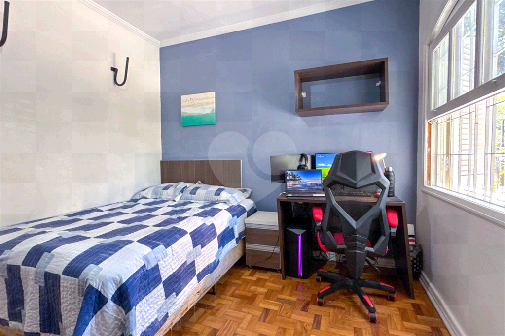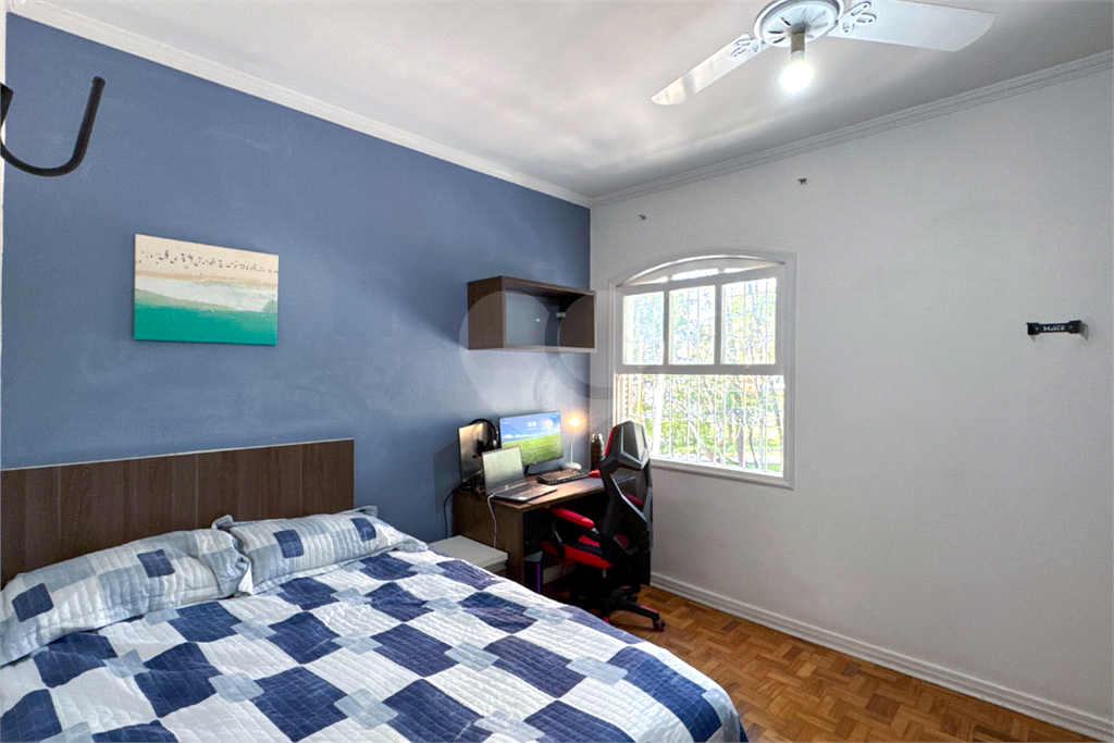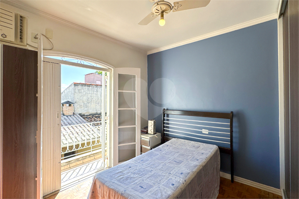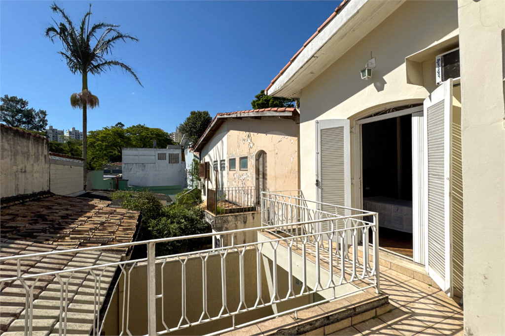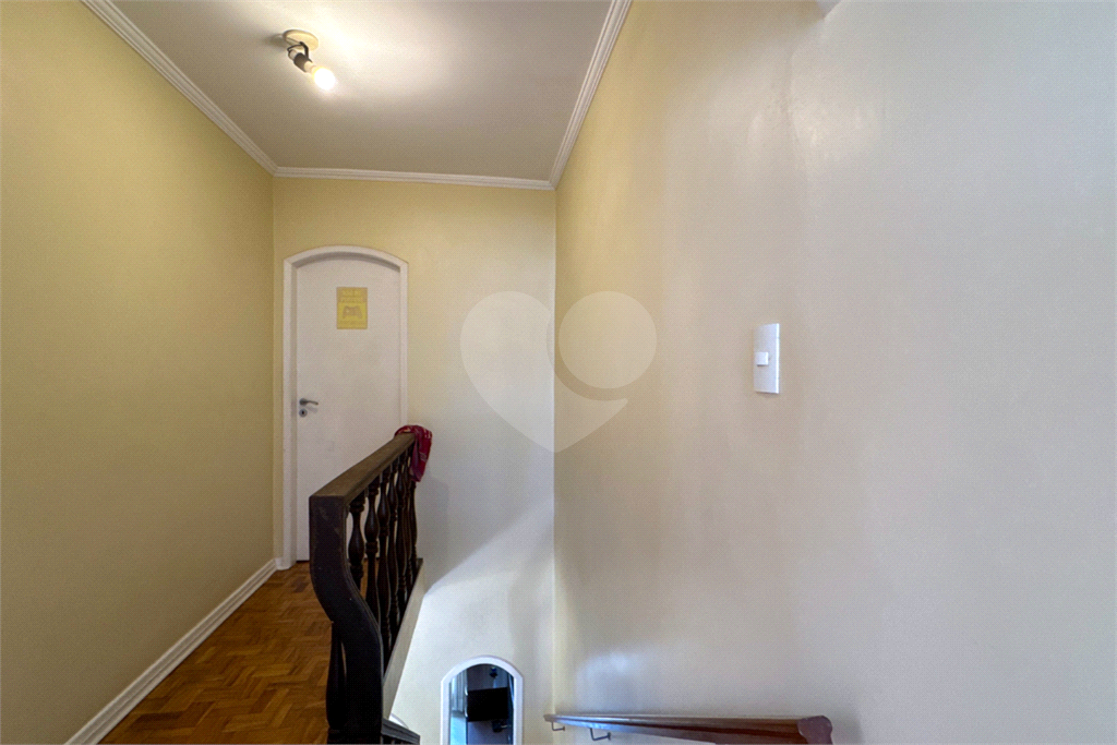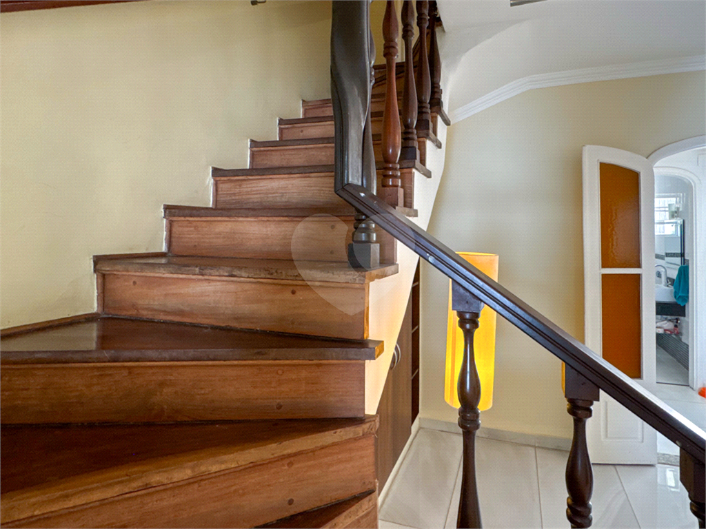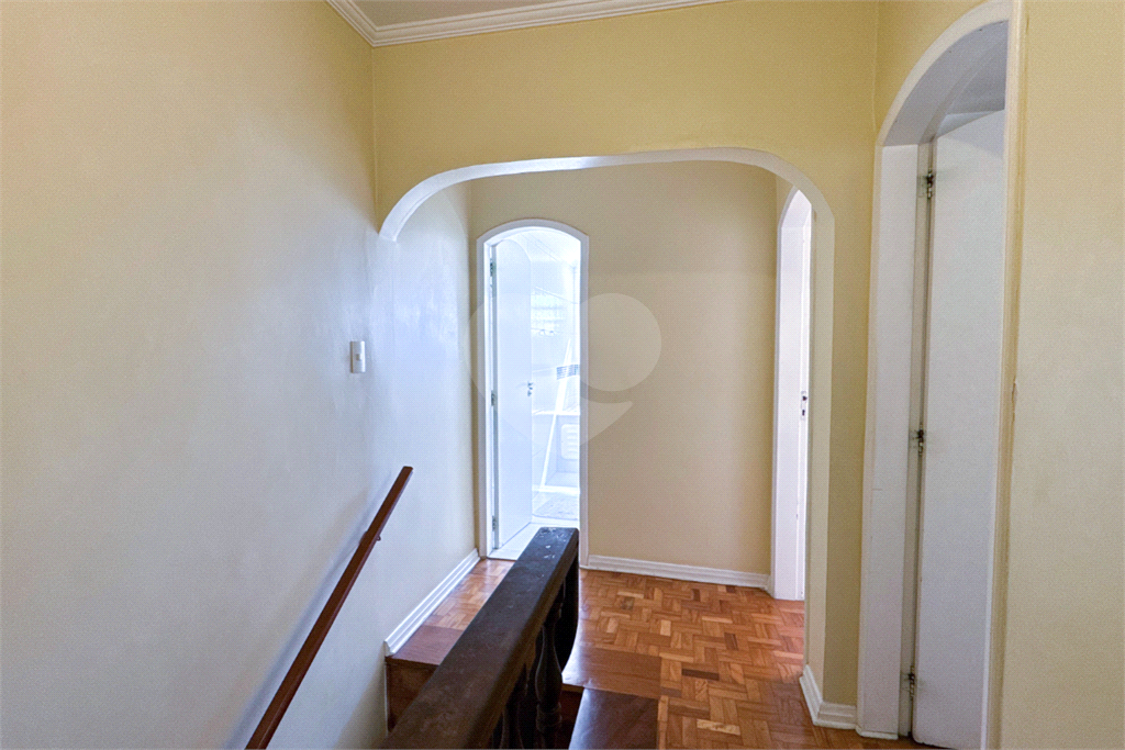 A escada em madeira maciça, em excelente estado de conservação, leva ao piso superior, onde ficam três dormitórios com armários embutidos, sendo uma suíte. Dois dormitórios possuem sacada privativa, um voltado para a praça (sol da manhã) e outro para os fundos (sol da tarde), proporcionando ambientes amplos, iluminados e muito agradáveis.