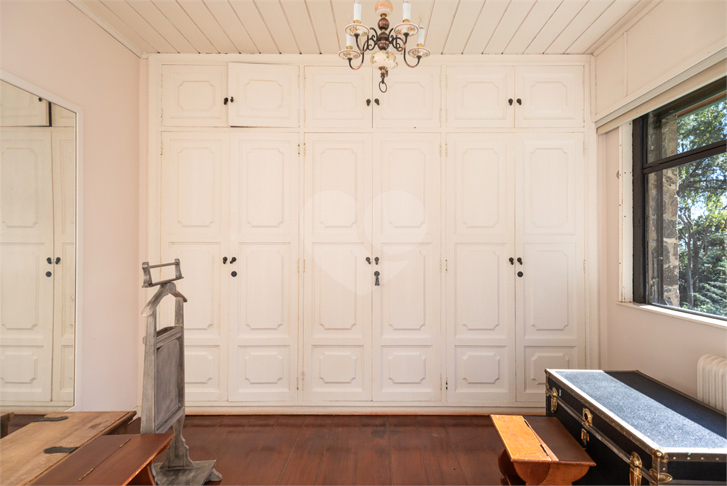 A casa conta com saunas seca e úmida, piscina, quadra de tênis e futebol, garagem para 8 carros. Também conta com casa de caseiro, pavilhão na piscina, canil, galinheiro, casa de lenha e capela. 4 suítes com chuveiro, banheiras e aquecedores, lavabo, sala de estar com lareira, sala de jantar, sala de TV e escritório, cozinha completa. Já o chalé de madeira e pedra antiga contempla 2 quartos com 1 banheiro (suíte americana), kitchenette e sala com lareira.