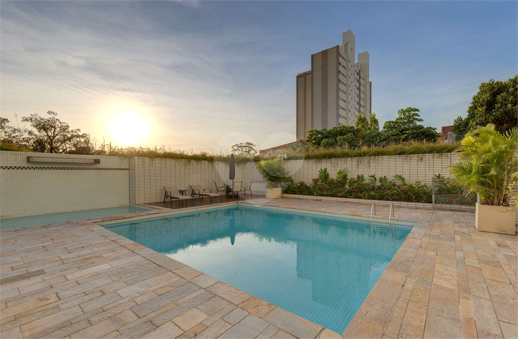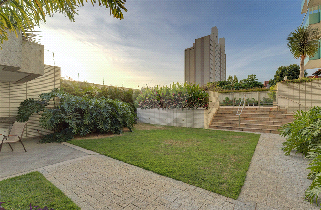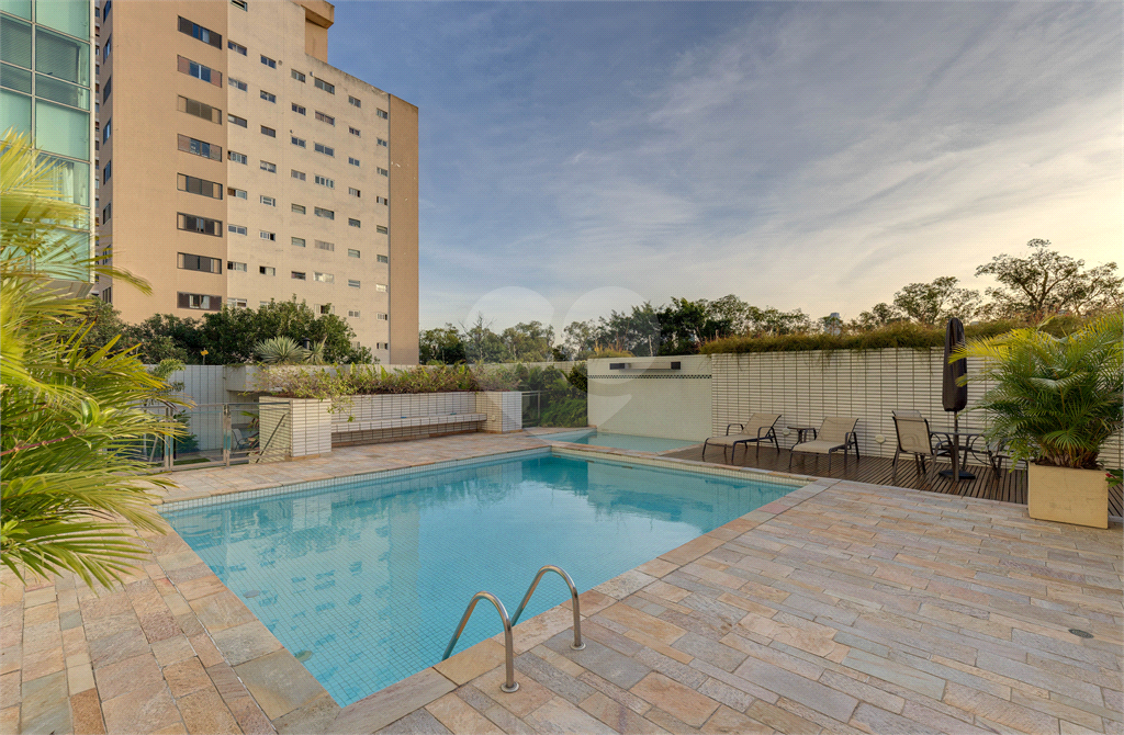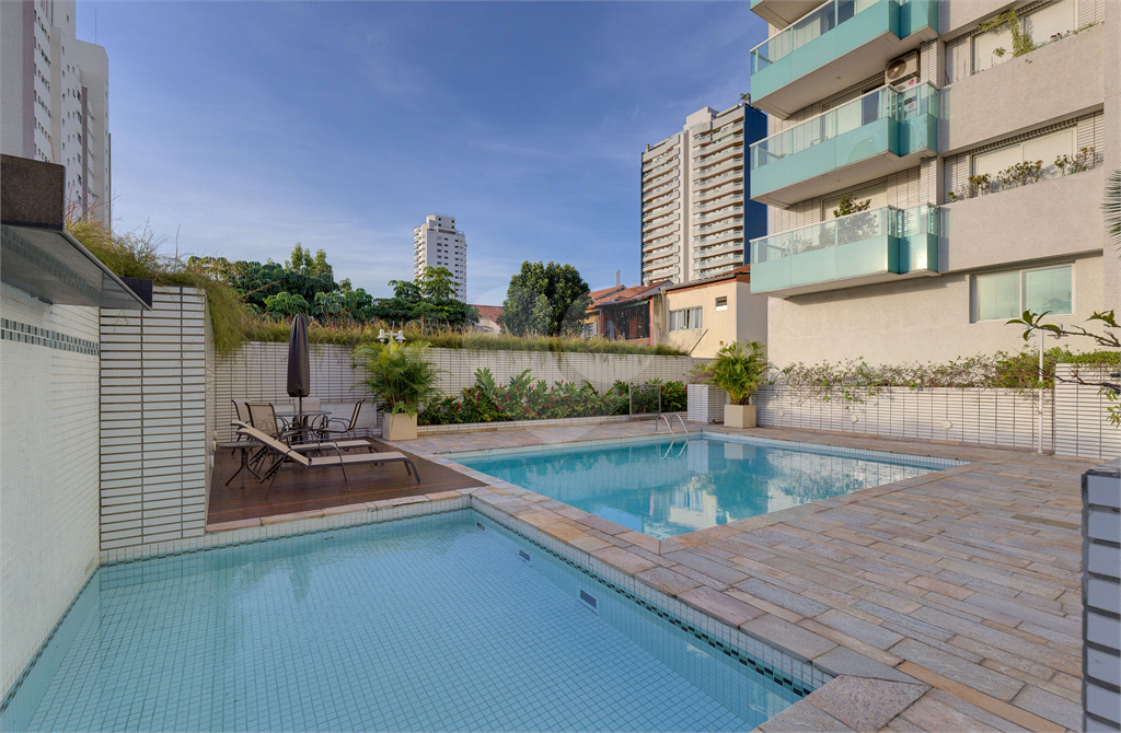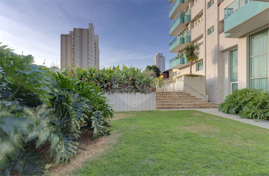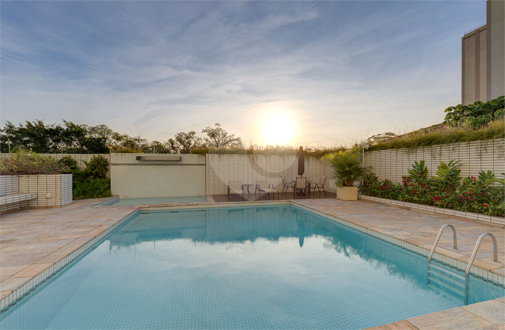 O condomínio acompanha o nível do imóvel, oferecendo infraestrutura completa com piscina, academia, salão de festas, sauna e churrasqueira.