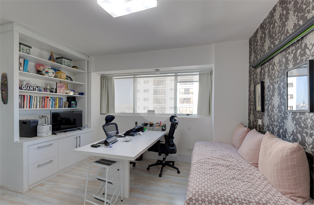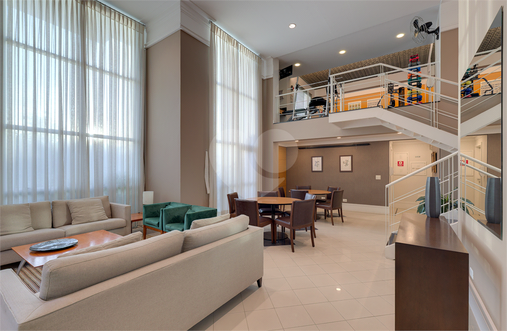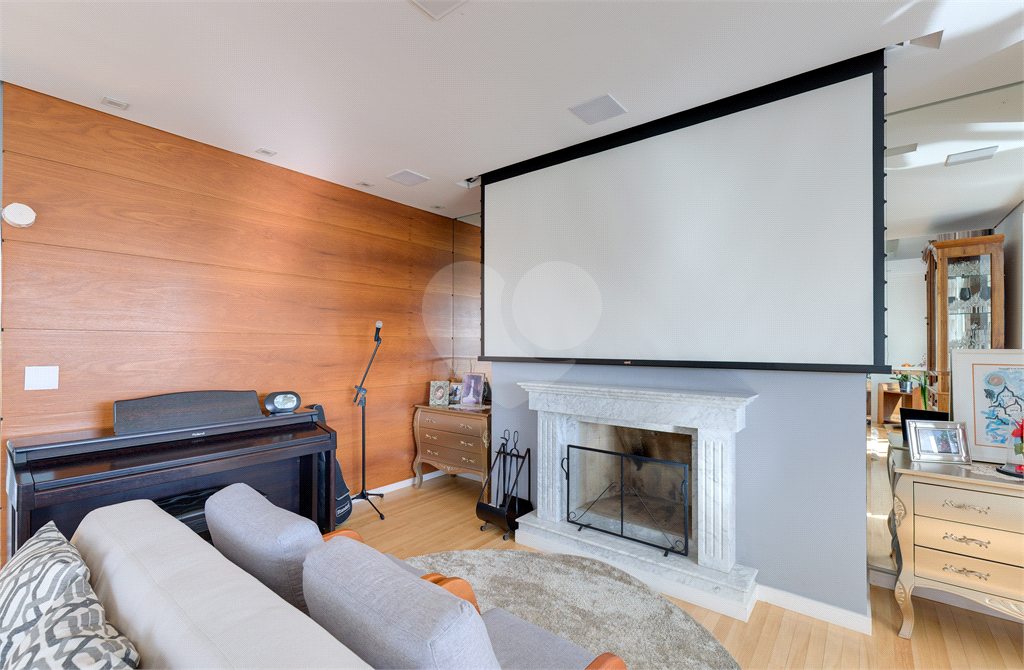O living impressiona com seu pé-direito duplo, lareira charmosa e integração à varanda com vista permanente para o parque. Ideal para receber, relaxar ou apenas contemplar o que há de melhor em São Paulo.